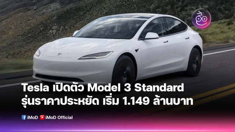 Tesla เปิดตัว Model 3 Standard อย่างเป็นทางการในไทย เป็นรถรุ่นเริ่มต้น ราคาประหยัด เปิดตัวด้วยราคา 1,149,000 บาท