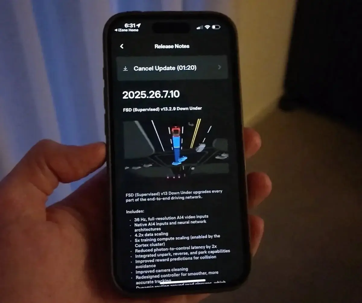 การอัปเดตที่จะเพิ่มระบบ FSD ในออสเตรเลียและนิวซีแลนด์คือเวอร์ชัน 2025.26.7.10 ซึ่งในบันทึกการเปลี่ยนแปลง (Release Notes) จะคล้ายกับเวอร์ชัน 13.2.9 ในอเมริกาเหนือเกือบทั้งหมด เพียงแต่จะใช้ชื่อว่า “FSD (Supervised) v13.2.9 Down Under” และตัดหัวข้อเกี่ยวกับโปรไฟล์ความเร็ว (Speed Profiles) ออกไป