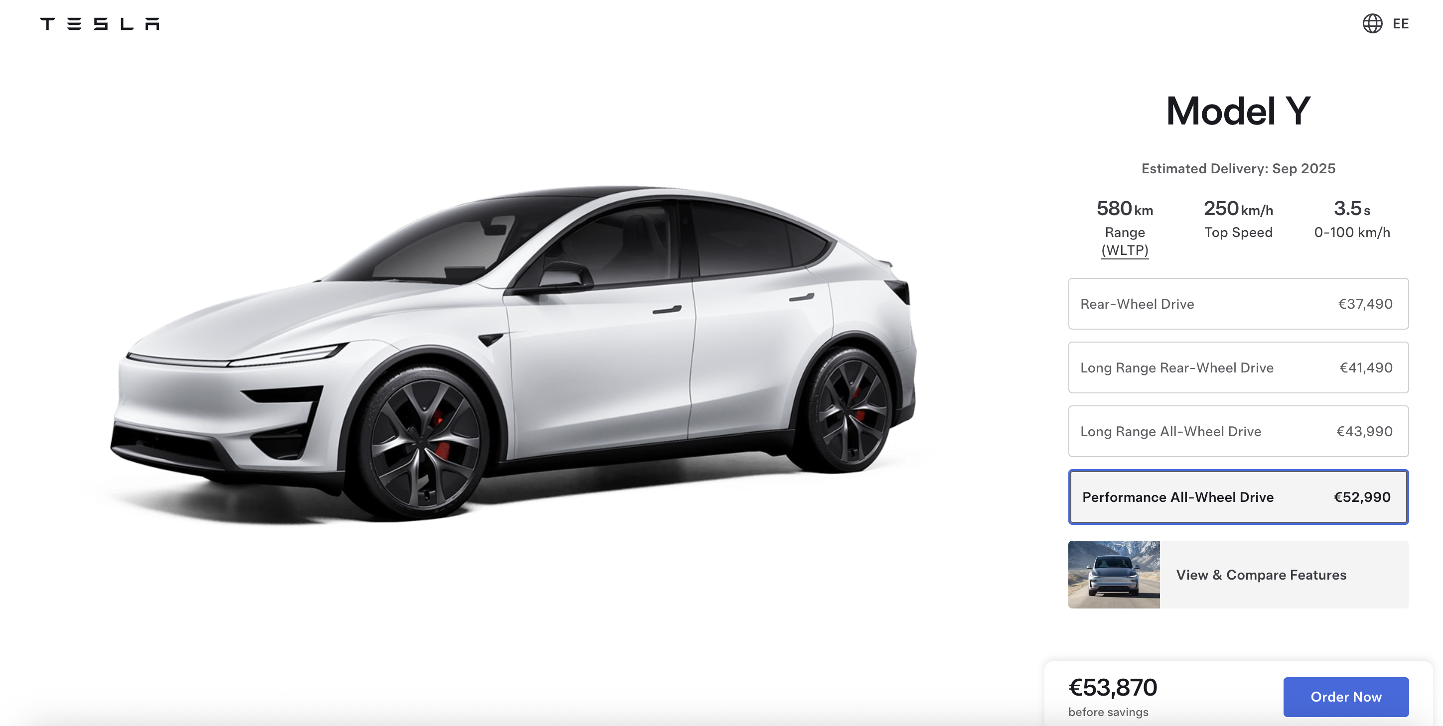 29 สิงหาคม 2025 Tesla ได้เปิดตัวรถยนต์ Tesla Model Y Performance รุ่นปรับปรุงใหม่ในยุโรป โดยรถครอสโอเวอร์ไฟฟ้าเวอร์ชันสปอร์ตนี้มาพร้อมช่วงล่างแบบ Adaptive โหมดการขับขี่ที่หลากหลาย ความเร็วสูงสุดที่สูงขึ้น อัตราเร่งที่เร็วขึ้น รวมถึงการปรับปรุงอื่น ๆ ทั้งภายนอกและภายใน