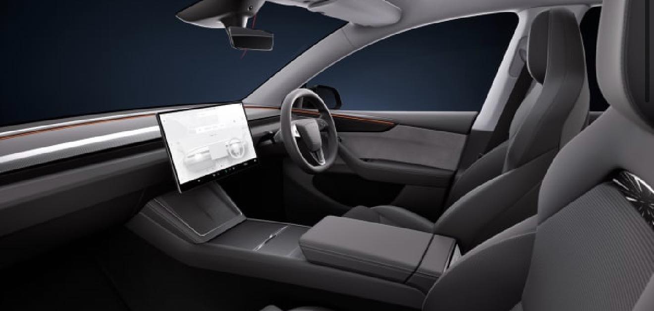 ภายในห้องโดยสารของ Model Y รุ่นนี้โดดเด่นด้วยหน้าจอตรงกลางที่มีขนาดใหญ่ขึ้นและมีความละเอียดสูงขึ้น วัดแนวทแยงมุมได้ 16 นิ้ว (จากเดิม 15.4 นิ้ว) และแสดงผลในระดับ Ultra HD (UHD)
