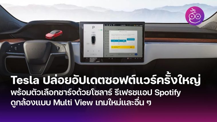 Tesla ปล่อยอัปเดตซอฟต์แวร์ใหม่ พร้อมตัวเลือกชาร์จด้วยโซลาร์ รีเฟรชแอป Spotify ดูกล้องแบบ Multi View เกมใหม่และอื่น ๆ