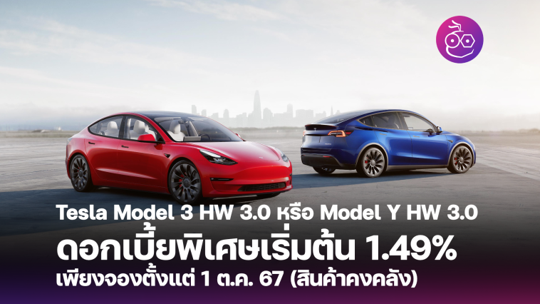 Tesla ประเทศไทย ประกาศข้อเสนอพิเศษ สำหรับผู้สนใจรถยนต์ Tesla Model 3 HW 3.0 หรือ Model Y HW 3.0 รับอัตราดอกเบี้ยเริ่มต้นเพียง 1.49% เพียงจองตั้งแต่วันที่ 1 ต.ค. 2024 และรับรถภายใน 27 ธ.ค. 67