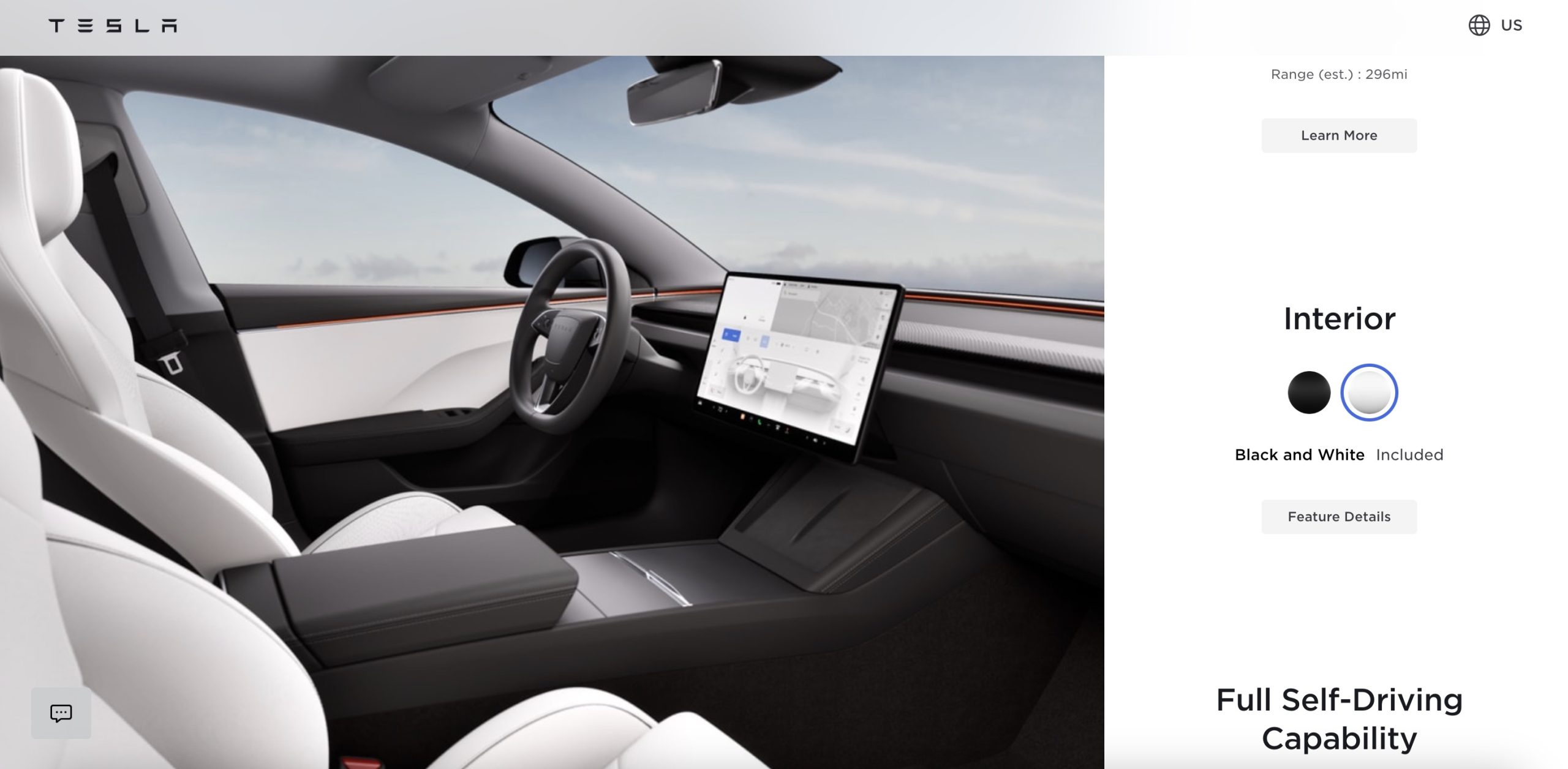 - Model 3 Long Range AWD ภายในสีขาว พิ่มค่าใช้จ่าย 2,000 ดอลลาร์สหรัฐฯ จากเดิม 500 ดอลลาร์สหรัฐฯ