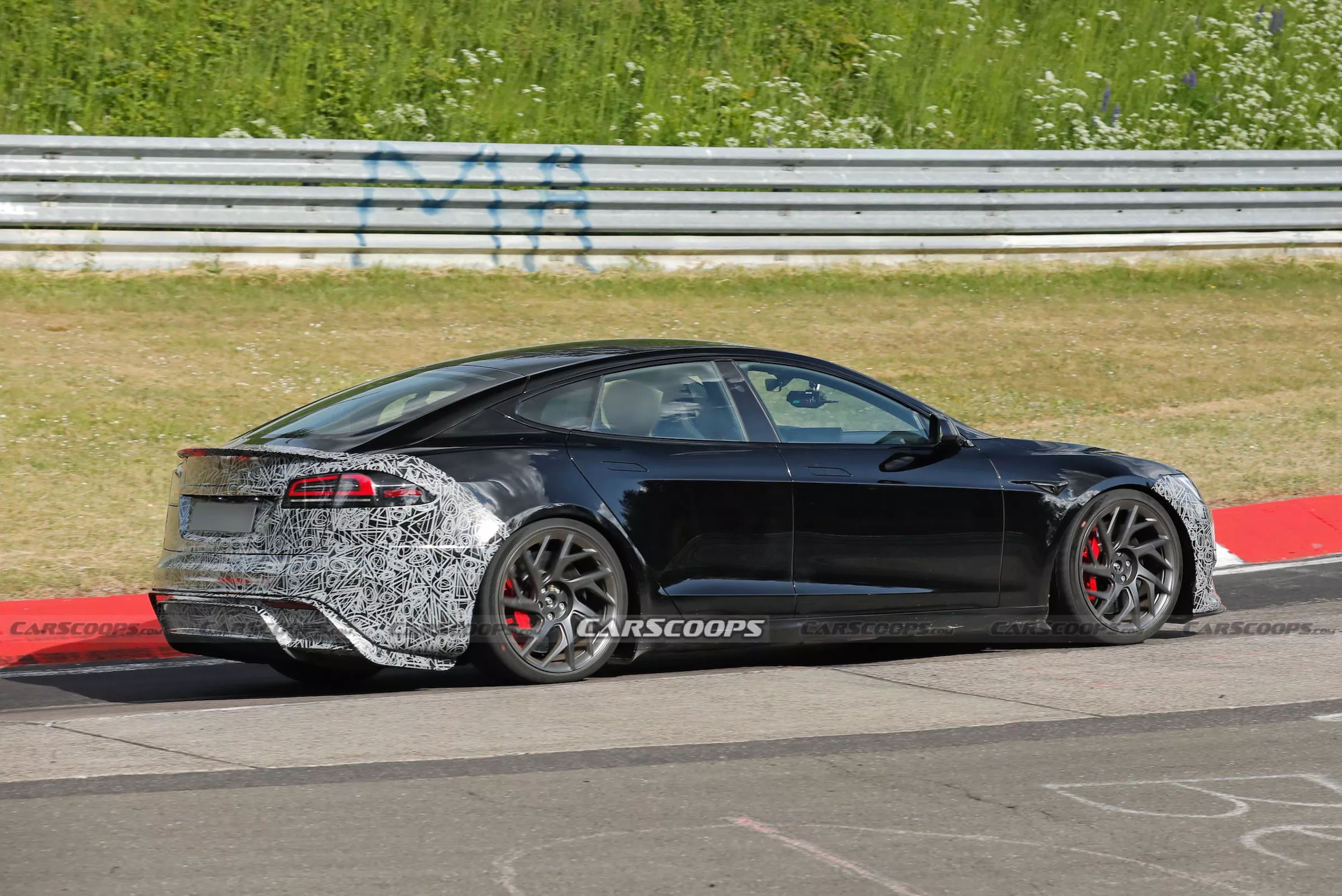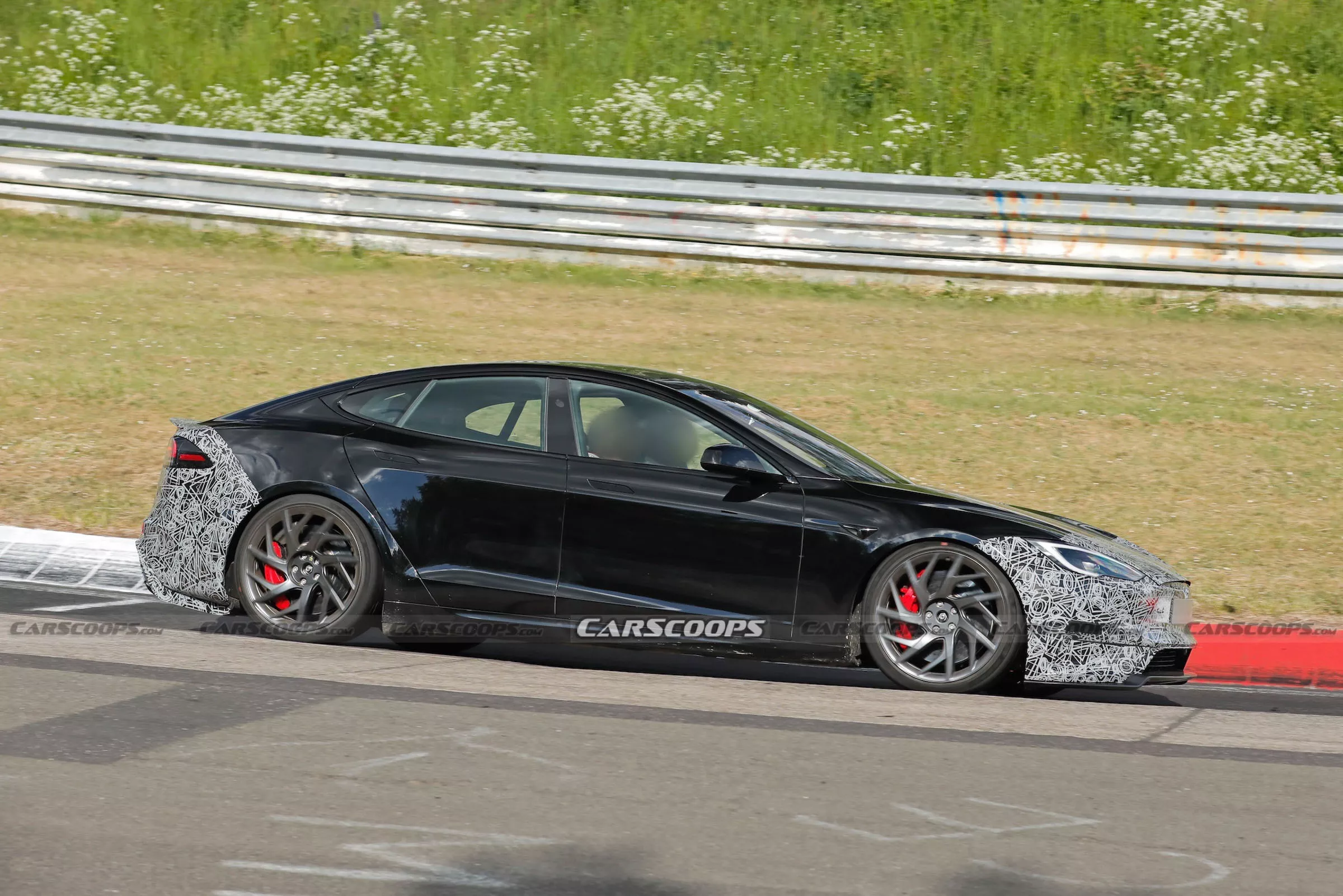 Carscoops ที่คอยติดตามการทดสอบรถยนต์รุ่นใหม่ตามสนามแข่งทั่วโลก ได้สังเกตเห็นรถที่คาดว่าเป็น Tesla Model S รุ่นปรับโฉมใหม่ ขณะกำลังวิ่งทดสอบที่สนาม Nürburgring ประเทศเยอรมนี โดยรถคันนี้น่าจะเป็นรุ่น Plaid ซึ่งเป็นรุ่นสมรรถนะสูงสุดของ Model S และสนามแข่งแห่งนี้ถือเป็นสถานที่เหมาะสมมากสำหรับการทดสอบรถที่เน้นประสิทธิภาพสูงแบบนี้