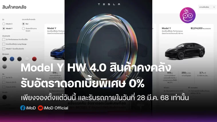 ผู้สนใจ Tesla Model Y HW 4.0 ทุกรุ่นย่อย จำนวนจำกัดในสินค้าคงคลัง ไม่ควรพลาด กับดอกเบี้ยสุดพิเศษต่ำเพียง 0%* เท่านั้น โดยเงื่อนไขจะต้องจองรถตั้งแต่วันนี้ และรับรถภายในวันที่ 28 มี.ค. 68