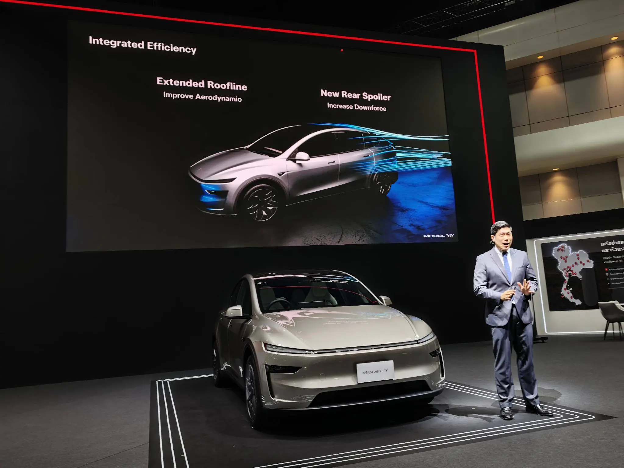 เปิดตัว Tesla Model Y L มาพร้อมราคา 1,999,000.- ดีไซน์ภายนอกและภายใน: มีการปรับปรุงดีไซน์เล็กน้อยเพื่อลดแรงต้านอากาศ ภายในมีหน้าจอสัมผัสขนาด 16 นิ้ว, ระบบเครื่องเสียงใหม่พร้อมลำโพง 18 ตัวและซับวูฟเฟอร์, แท่นชาร์จไร้สาย และช่องชาร์จสำหรับทุกที่นั่ง