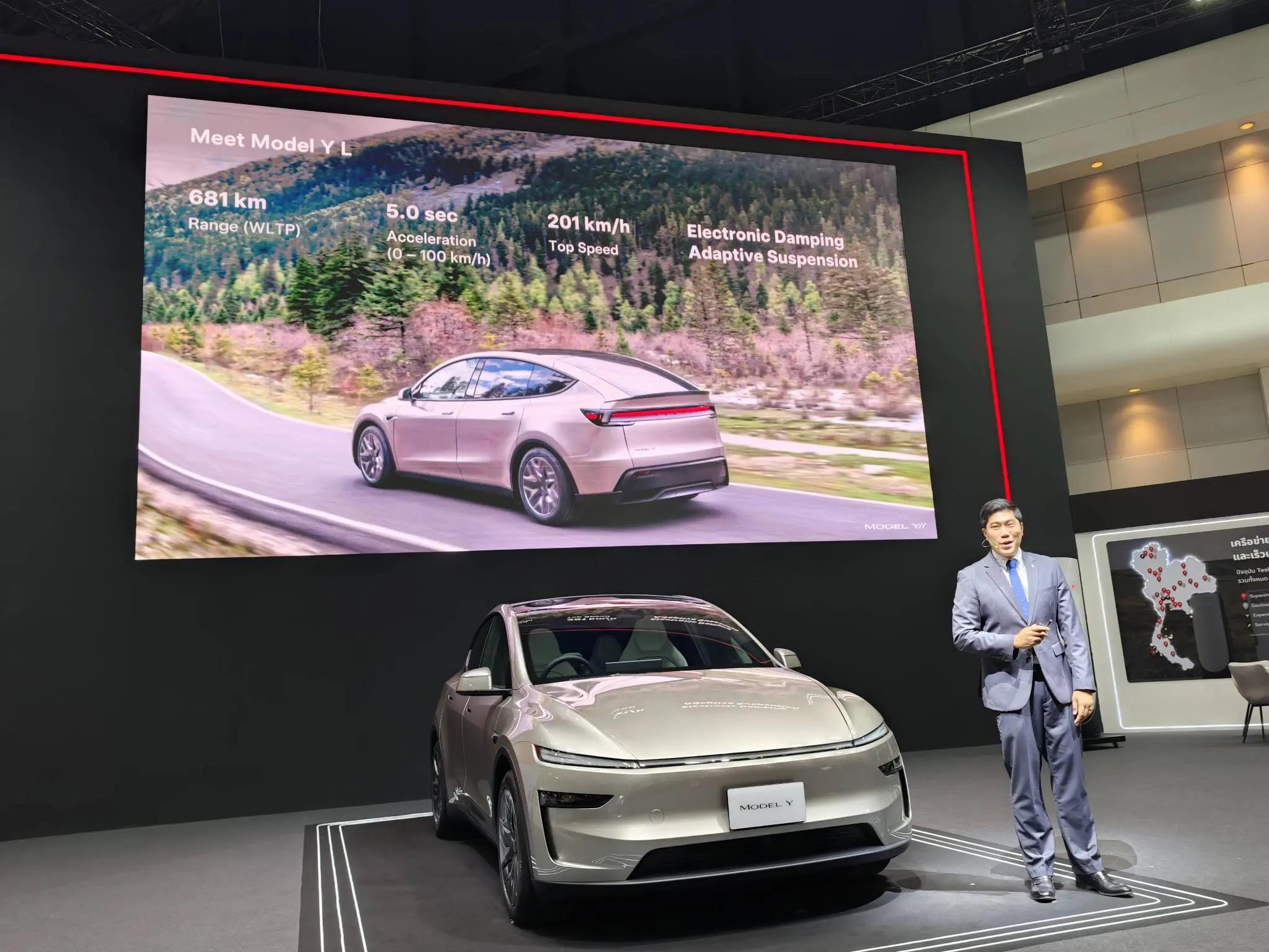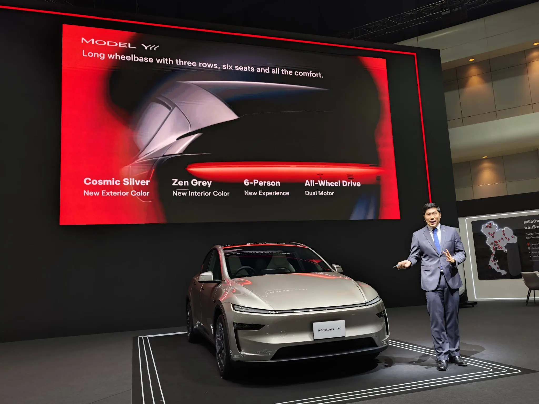 Tesla Model Y L รุ่นฐานล้อยาว 6 ที่นั่ง ได้เปิดตัวที่ประเทศไทยเป็นประเทศที่ 4 ของรุ่นนี้ จุดเด่นของรถรุ่นนี้มีดังนี้: