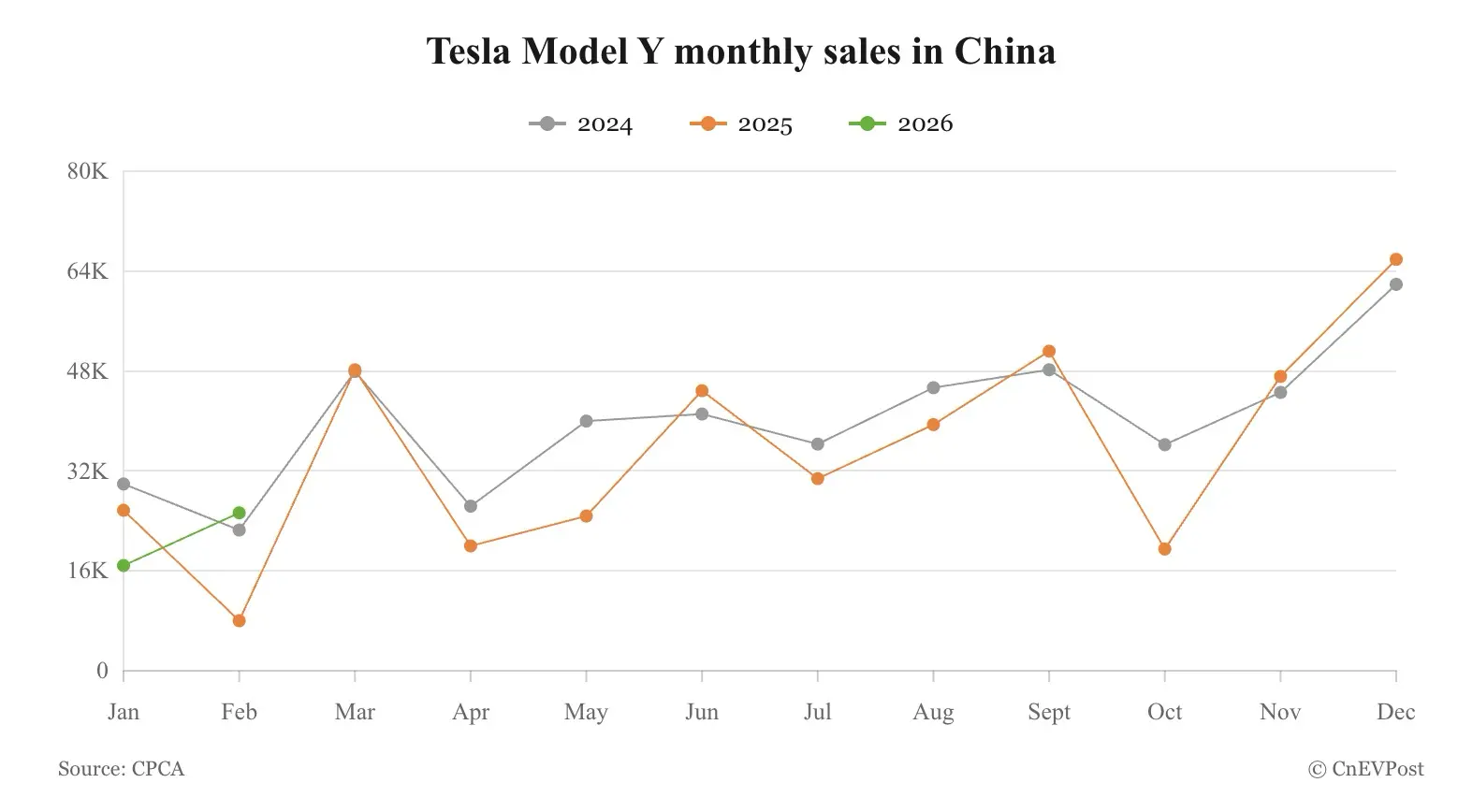 การประกาศความสำเร็จของ Model Y เกิดขึ้นในช่วงที่ Tesla กำลังฟื้นตัวอย่างแข็งแกร่งในตลาดจีน โดยในเดือนกุมภาพันธ์ ยอดขายปลีกในจีนพุ่งสูงขึ้นถึง 42.68% เมื่อเทียบกับปีที่แล้ว อยู่ที่ 38,206 คัน ซึ่งสวนทางกับสภาพตลาดรถยนต์โดยรวมของจีนที่ค่อนข้างซบเซา ส่งผลให้ Tesla ครองส่วนแบ่งตลาดรถยนต์ไฟฟ้า (BEV) ในจีนเพิ่มขึ้นเป็น 13.74% ซึ่งสูงที่สุดนับตั้งแต่เดือนเมษายน 2024