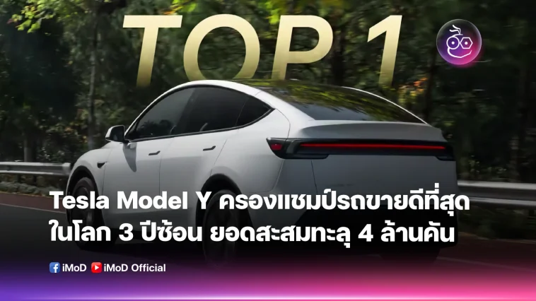 Tesla ออกมาประกาศว่า Model Y ยังคงครองแชมป์รถยนต์นั่งส่วนบุคคลที่ขายดีที่สุดในโลกติดต่อกันเป็นปีที่ 3 โดยปัจจุบันมียอดขายสะสมทั่วโลกทะลุ 4 ล้านคันเป็นที่เรียบร้อยแล้ว