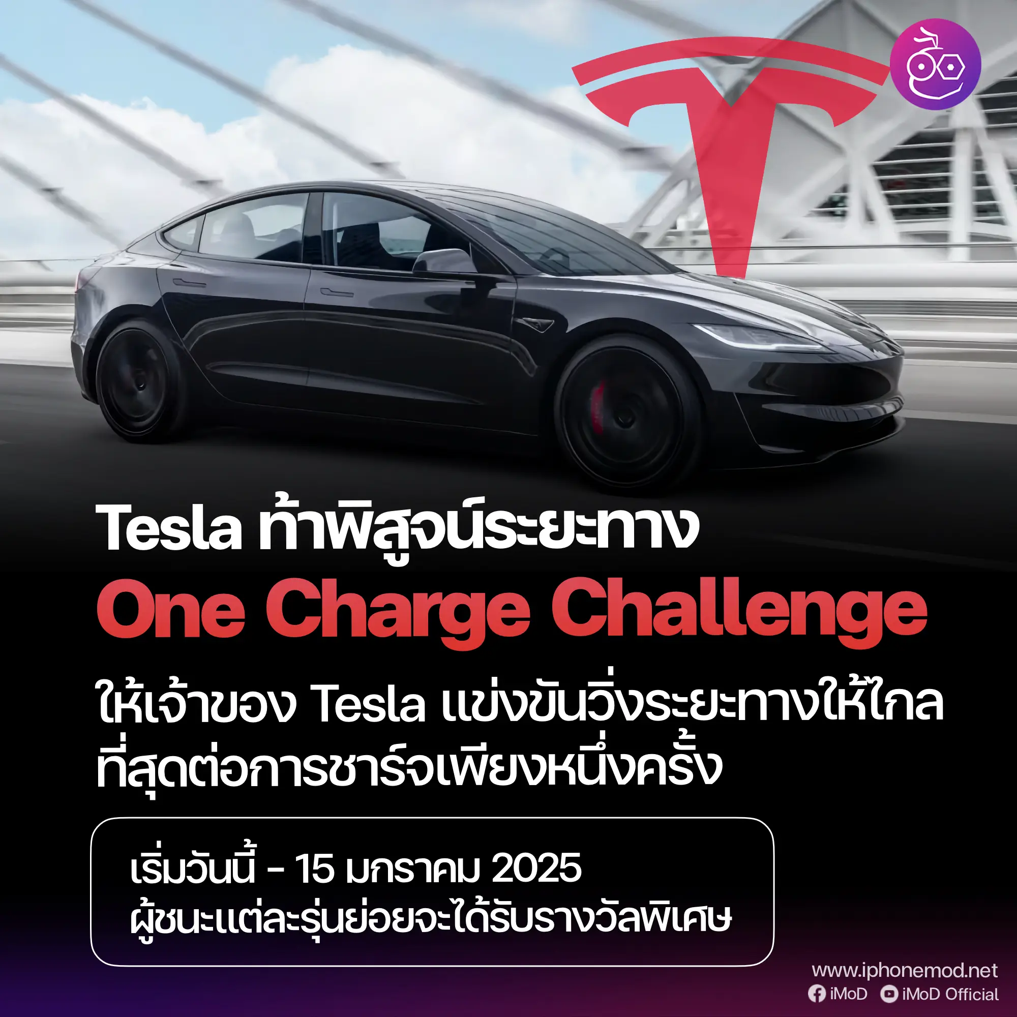 กิจกรรม One Charge Challenge ตั้งแต่วันที่ 15 พฤศจิกายน 2567 – 15 มกราคม 2568 สามารถชมกติกาและเงื่อนไขอื่น ๆ เพิ่มเติมได้ที่ https://www.tesla.com/th_th/event/tesla-occ