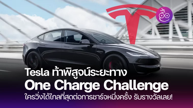 Tesla เชิญชวนเจ้าของรถยนต์ไฟฟ้า Tesla ในไทยเข้าร่วมแคมเปญ One Charge Challenge เข้าร่วมแข่งขันสุดพิเศษ ชาร์จแบตเตอรี่ 100% แล้ววิ่งให้ได้ระยะทางไกลที่สุด ผู้ชนะจะได้รับรางวัลพิเศษจาก Tesla