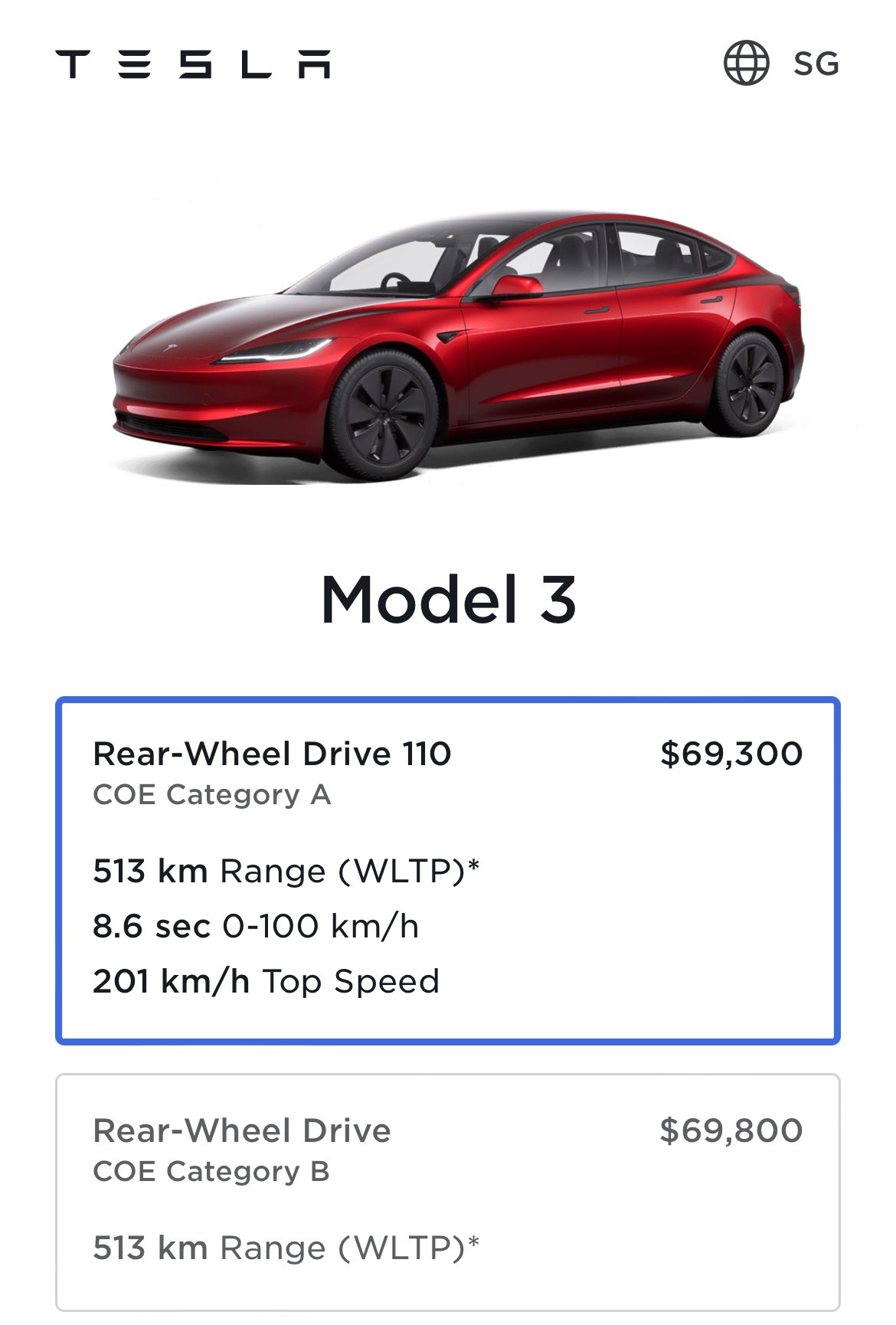 แต่บางคนระบุว่า ตัวเลือกดังกล่าวอาจทำมาเพื่อกฎระเบียบในตลาดบางประเทศ เช่น สิงคโปร์ ที่ Tesla เพิ่งเปิดตัว Model 3 RWD พร้อมมอเตอร์กำลัง 110kW เพื่อให้เป็นไปตามกฎระเบียบการปล่อยมลพิษที่เข้มงวดในท้องถิ่น