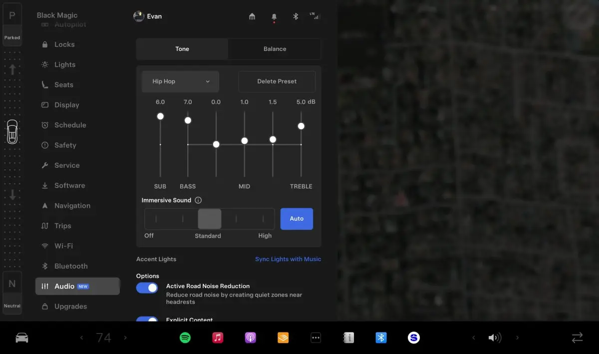Tesla ได้ออกแบบการตั้งค่า Presets ใหม่ และย้ายไปยังส่วนควบคุมหลักของรถ แทนที่จะเข้าถึงได้ผ่านปุ่มในส่วนการเล่นเพลง