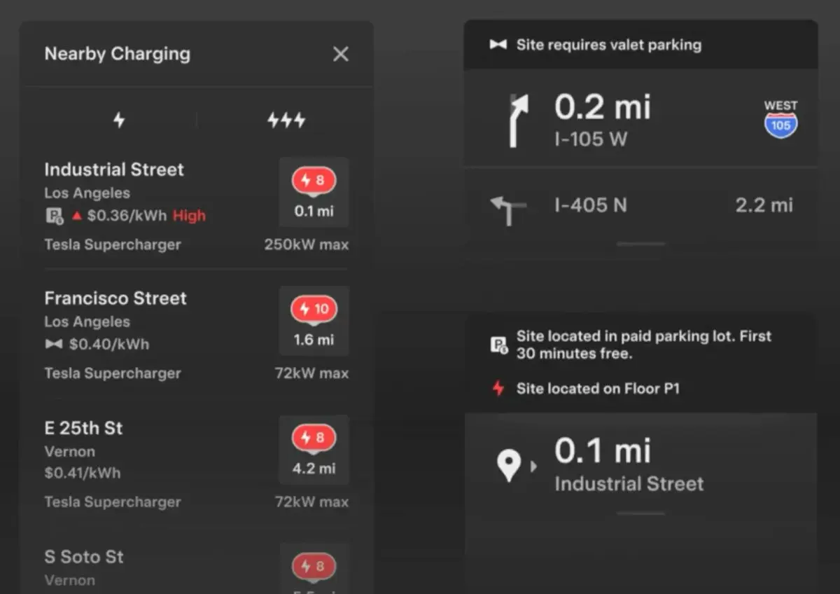 ก่อนหน้านี้มีการพบเบาแสะว่า บนหน้าจอรถยนต์ Tesla ส่วนของ Supercharger มีการเพิ่มรายละเอียดเกี่ยวกับที่ตั้งของ Supercharger โดยแสดงข้อมูล บริการที่จอด Valet Parking, ที่จอดรถที่ต้องเสียค่าจอด, ต้องใช้รหัสเข้าถึง (Access Code) และ ชั้นที่จอดรถ (ชั้นที่ Supercharger ตั้งอยู่ในอาคารจอดรถ)