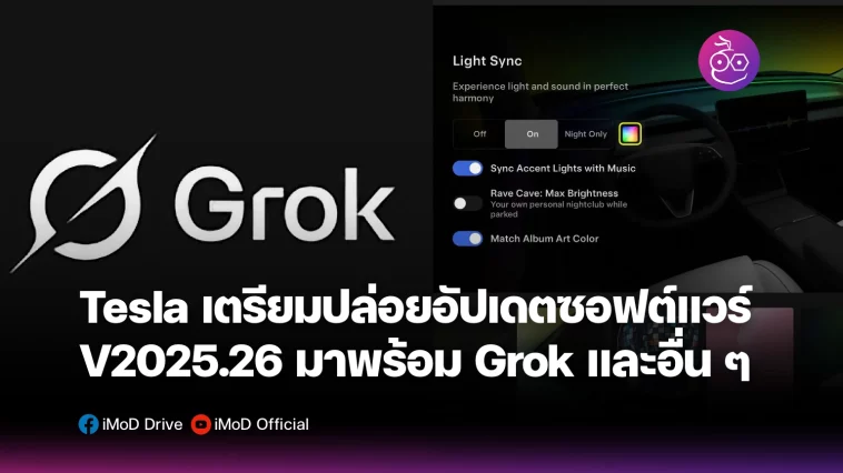 Tesla เตรียมอัปเดตซอฟต์แวร์ V2025.26 มาพร้อม Grok, Light Sync, การตั้งค่าเสียง และฟีเจอร์อื่น ๆ อีกมากมาย