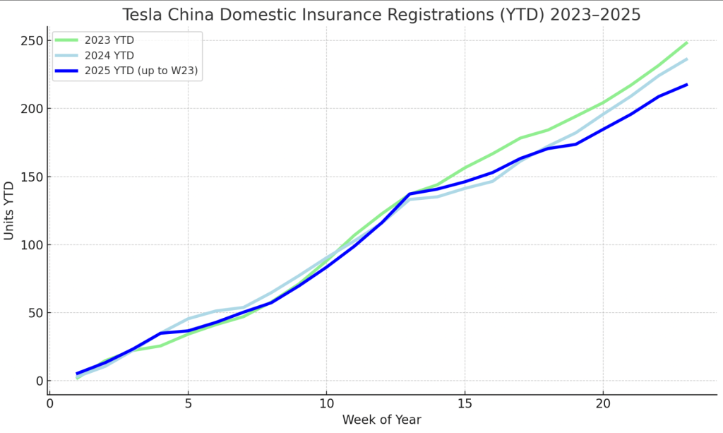 ข้อมูลการจดทะเบียนประกันภัยรถยนต์ใหม่จากจีนที่เปิดเผยในวันนี้ ยืนยันว่า Tesla ขายรถยนต์ในจีนได้เพียง 8,600 คันในช่วงสัปดาห์แรกของเดือนมิถุนายน