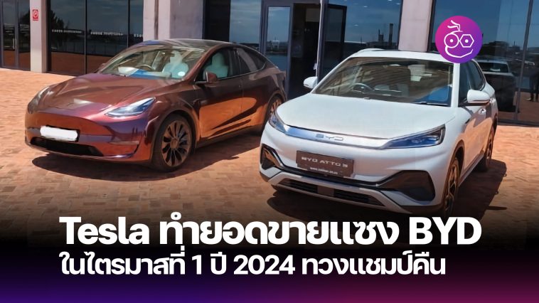 หลังจากที่ BYD ทำยอดขายรถยนต์ไฟฟ้าล้วน (BEV) แซงหน้าแชมป์อย่าง Tesla ในไตรมาสที่ 4 ปีที่แล้ว ล่าสุดผลประกอบการไตรมาสที่ 1 ปี 2024 Tesla ก็กลับมาทวงแชมป์ยอดขายรถยนต์ไฟฟ้าได้อีกครั้ง