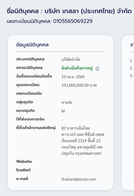 Tesla ประเทศไทย ได้เพิ่มทุนจดทะเบียนบริษัทเป็น 253,000,000 บาท เตรียมรุกตลาดไทยอย่างเป็นทางการ รายงานเผยว่ามีกำหนดส่งมอบรถช่วงต้นปี 2566 นี้!