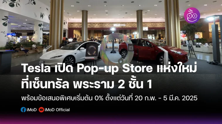 Tesla ประเทศไทย เปิด Pop-up Store แห่งใหม่ พร้อมข้อเสนอพิเศษเริ่มต้น 0% ที่เซ็นทรัล พระราม 2 ชั้น 1 หน้าร้าน Muji โซน Tree Chamber ตั้งแต่วันที่ 20 ก.พ. – 5 มี.ค. 2025