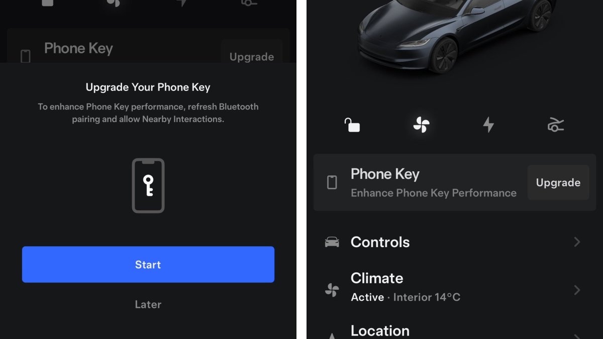 สำหรับฟีเจอร์ Phone Key ที่ได้รับการปรับปรุงใหม่นี้ ผู้ใช้สามารถเปิดใช้งานที่แอป Tesla > Phone Key > แล้วเลือก Upgrade จากนั้นดำเนินการตามคำแนะนำให้เสร็จสิ้น