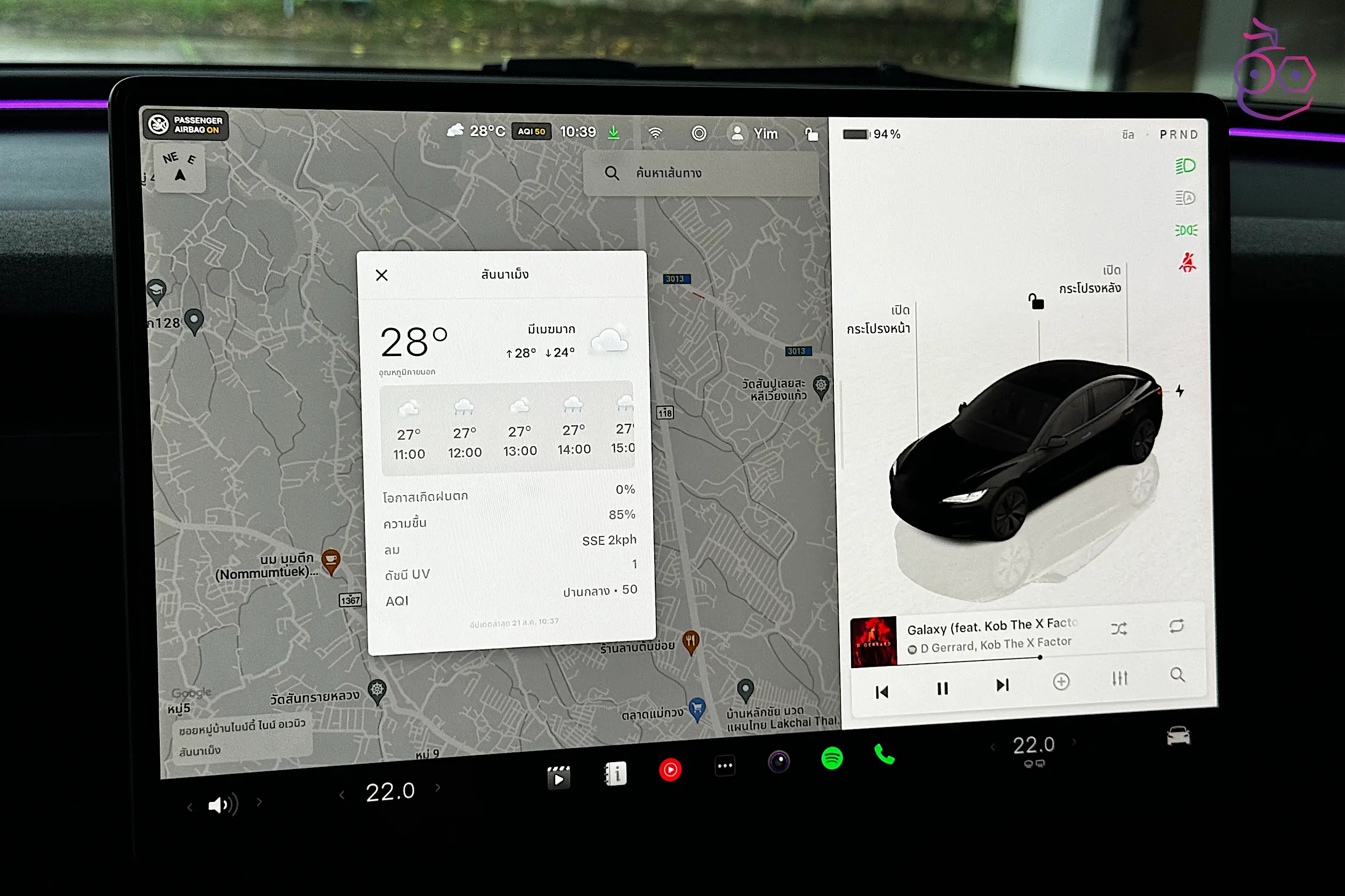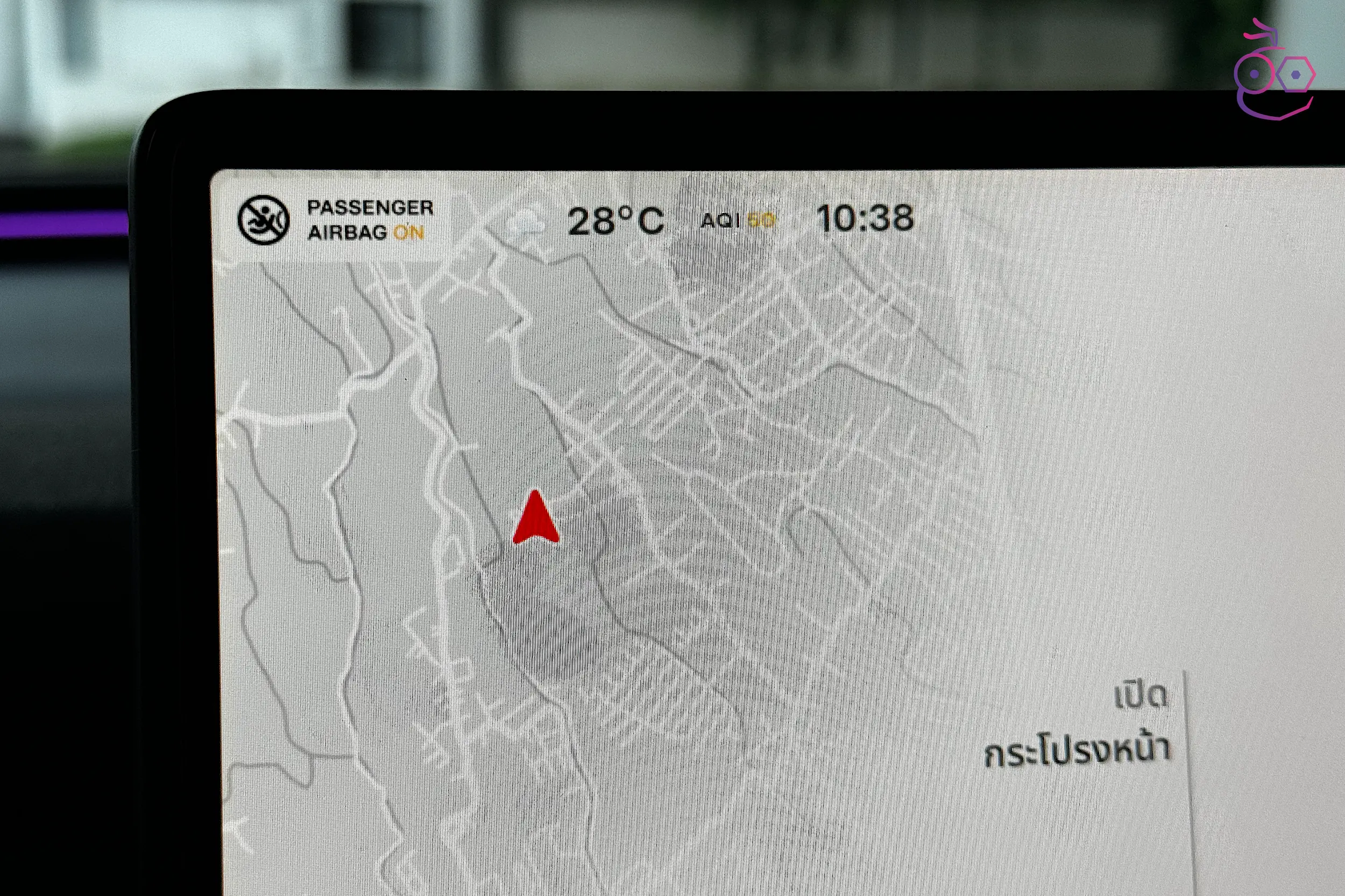 แถบสถานะของรถที่แสดงด้านบนหน้าจอจะแสดงอุณหภูมและค่า AQI สามารถแตะเพื่อดูรายละเอียดของสภาพอากาศในพื้นที่ที่เราอยู่ได้