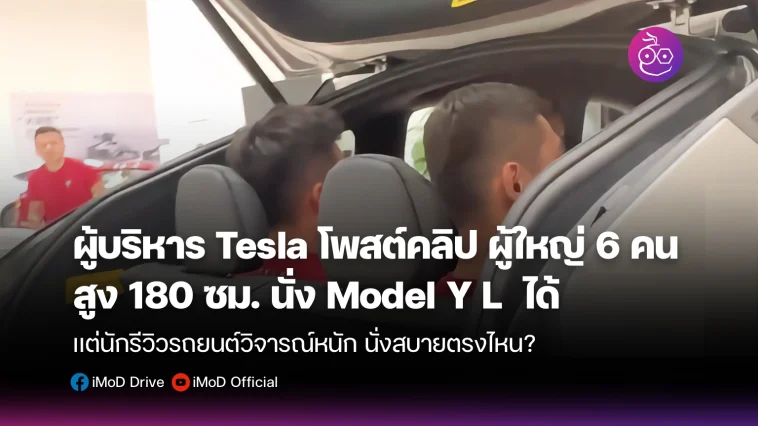 ผู้บริหาร Tesla โพสต์คลิปผู้ใหญ่สูง 1.80 ม. นั่ง Model Y L ได้ 6 คน แต่กลับถูกนักรีวิววิจารณ์หนัก