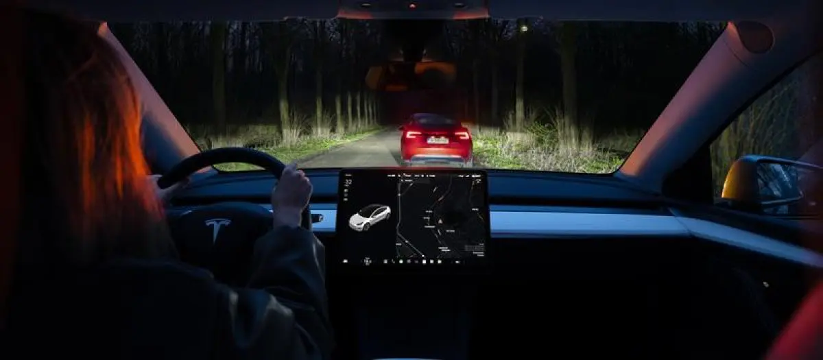 ไฟสูงอัจฉริยะจะลดแสงจ้าจากไฟหน้าด้วยการหรี่เฉพาะจุดของหลอด LED Matrix ฟีเจอร์นี้เริ่มใช้กับ Model Y รุ่นรีเฟรชก่อน และตอนนี้จะรองรับใน Model S, Model 3, Model X และ Model Y รุ่นใหม่ทั้งหมด (ยกเว้น Cybertruck เพราะไฟหน้าขนาดเล็กไม่รองรับเทคโนโลยีนี้)