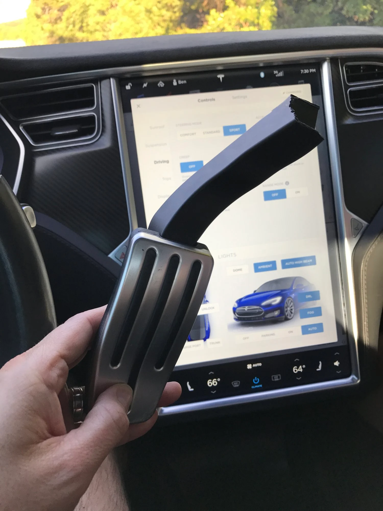 เจ้าของรถรายหนึ่งที่พบปัญหาดังกล่าว ได้โพสต์บนผ่านแพลตฟอร์มโซเชียลมีเดีย Reddit เมื่อวันที่ 20 กรกฎาคมที่ผ่านมา พร้อมระบุว่า “ เขาไม่ได้เหยียบคันเร่งแรงขนาดนั้น และเขาไม่คิดว่าจะหักเกือบครึ่งได้ขนาดนี้ ” และได้มีผู้แสดงความเห็น ว่าก้านคันเร่งของ Tesla ได้ผลิตมาจากซัพพลายเออร์ ซึ่งทำมาจากวัสดุโพลีเมอร์ / พลาสติกกลวงบางชนิด เมื่อเทียบกับก้านแป้นเบรก จะทำมาจากเหล็กแข็ง