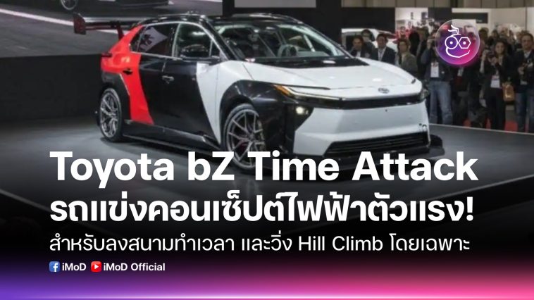Toyota ได้เปิดตัวรถต้นแบบไฟฟ้าสมรรถนะสูง รุ่นแรกของแบรนด์นามว่า bZ Time Attack Concept สร้างขึ้นเพื่อ “วัดขีดจำกัดสมรรถนะรถยนต์ไฟฟ้า” เน้นลงสนามแข่งเพื่อการทำเวลา Time Attack และการแข่ง Hill Climb ที่ต้องใช้ความเร็ว และแรงบิดแบบต่อเนื่อง