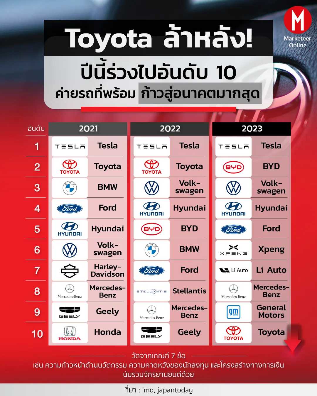 Toyota ตกอันดับ! แบรนด์รถที่มีความพร้อมสำหรับอนาคต