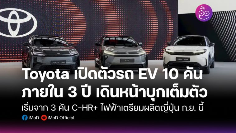 Toyota เตรียมเปิดตัวรถ EV ใหม่ 10 รุ่นภายใน 3 ปี นำทัพด้วย 3 คัน C-HR+, bZ4X (ปรับโฉม) และ Land Cruiser EV