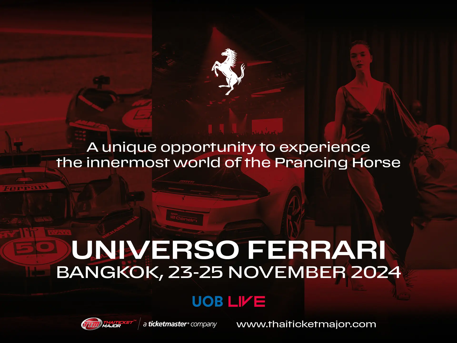 Universo Ferrari ไม่ใช่เพียงแค่การจัดแสดงรถยนต์ แต่เป็นการเฉลิมฉลองถึงจิตวิญญาณ ประวัติศาสตร์อันทรงคุณค่า และนวัตกรรมที่ไร้ขีดจำกัด ไม่ว่าจะเป็นผู้ที่ชื่นชอบ Ferrari มายาวนาน หลงรักในความเร็วบนสนามแข่ง หรือเพิ่งเริ่มต้นการเดินทางไปบนเส้นถนนของม้าลำพอง นี่คืองานที่คุณไม่ควรพลาด งานระดับโลกของ Ferrari ที่อาจจะถูกจัดขึ้นเพียงครั้งเดียวในประเทศ