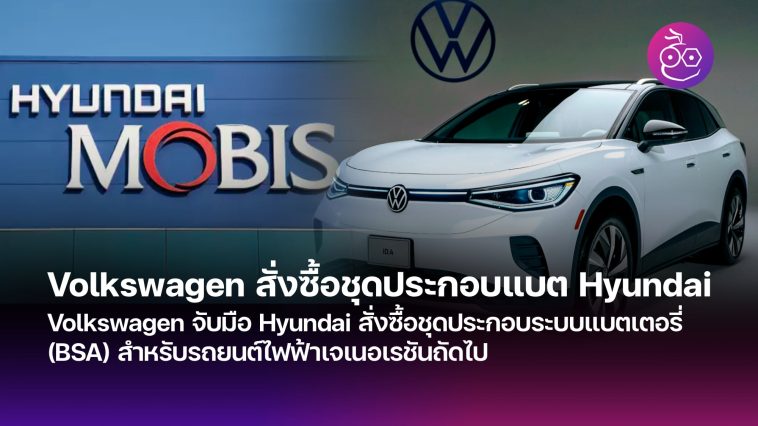 เมื่อกลางสัปดาห์ที่ผ่านมา Hyundai Mobis ที่เป็นซัพพลายเออร์หลักของ Hyundai Motor Group ได้ประกาศว่า Volkswagen ได้สั่งซื้อชุดประกอบระบบประกอบแบตเตอรี่ (BSA) จำนวนมาก เพื่อนำมาใช้กับรถยนต์ไฟฟ้า (EV) เจเนอเรชั่นถัดไป