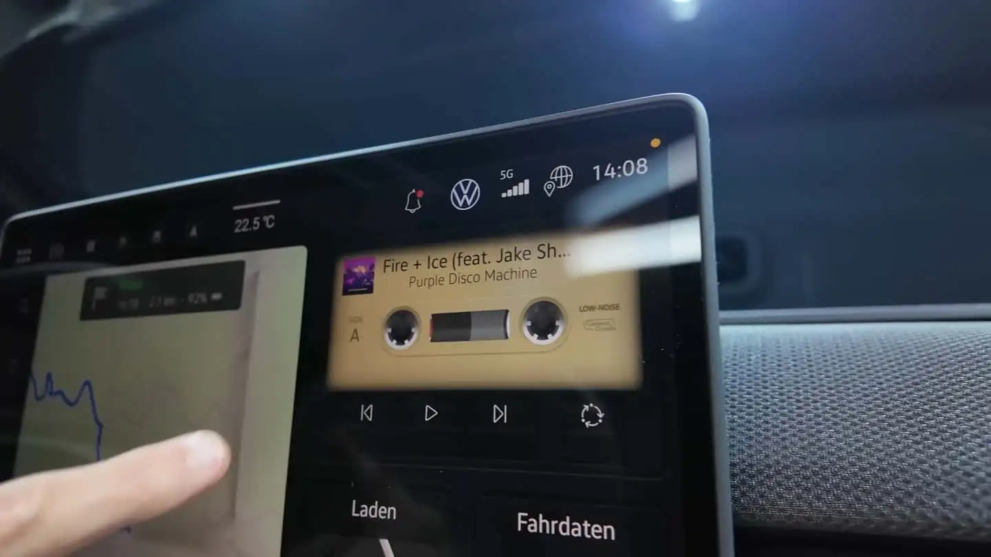 นี่คือกลิ่นอายที่โดนใจทั้งคนที่โตมากับเทปคาสเซ็ต และคนรุ่นใหม่เองก็เริ่มหันกลับไปสะสมเทปอีกครั้ง นอกจากนี้ ระบบอินโฟเทนเมนต์ใหม่ยังใช้งานง่ายขึ้นมากใกล้เคียงกับการใช้ Apple CarPlay และล้างภาพจำของอินเทอร์เฟซที่ซับซ้อนของ VW ID.4 และ EV รุ่นก่อนหน้าไปทั้งหมด