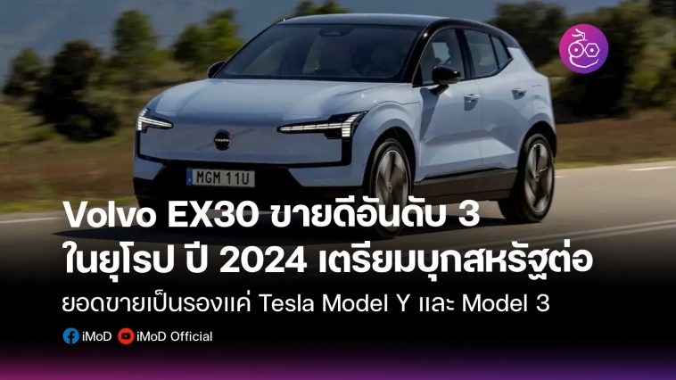 Volvo EX30 รถ SUV ไฟฟ้าคันเล็กที่สุด ราคาย่อมเยาที่สุดของ Volvo ได้ขึ้นแท่นกลายเป็นรถ EV ที่ขายดีเป็นอันดับ 3 ในยุโรปเมื่อปี 2024 เป็นรองเพียงแค่ Tesla Model Y และ Model 3 เท่านั้น