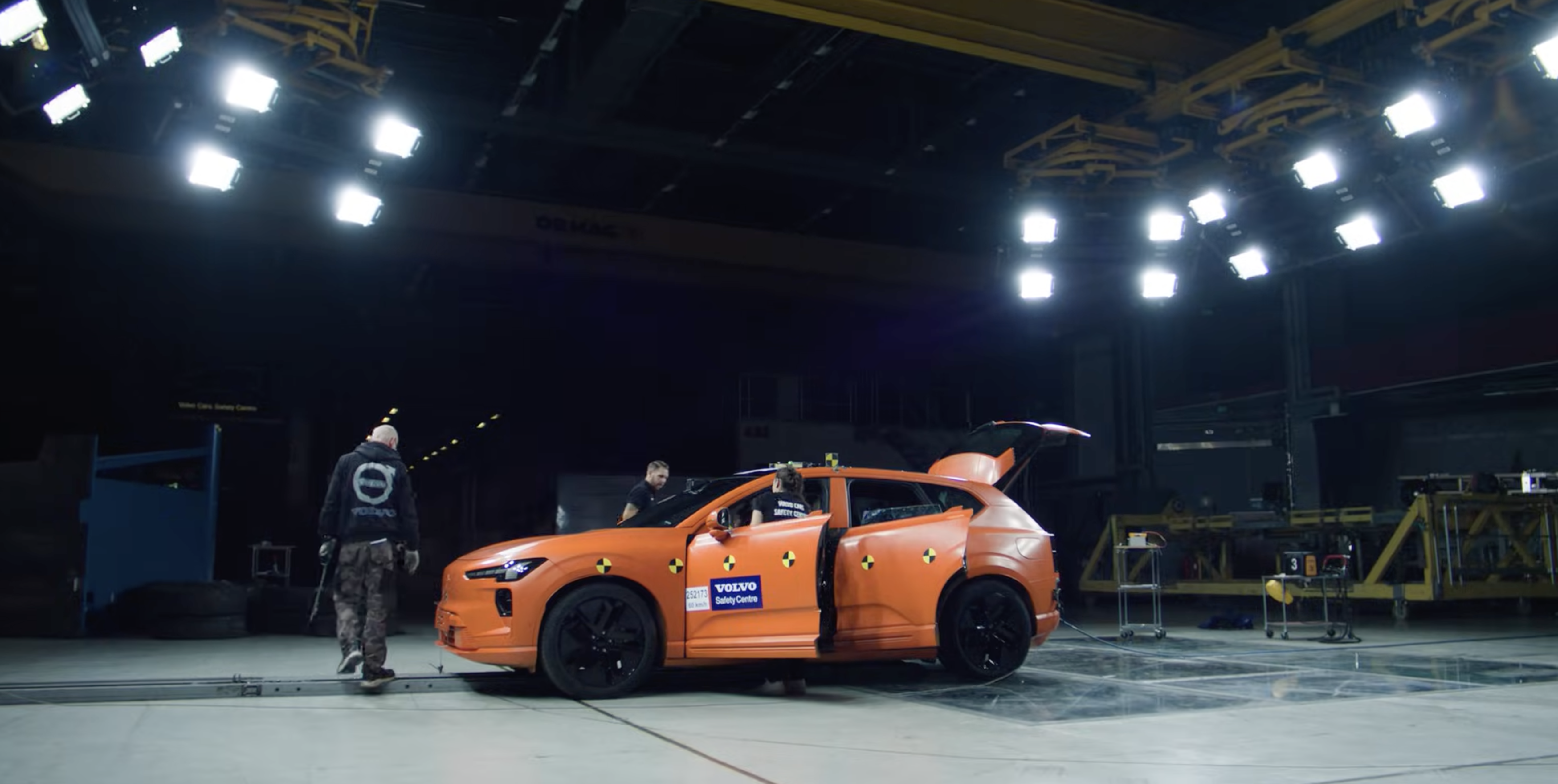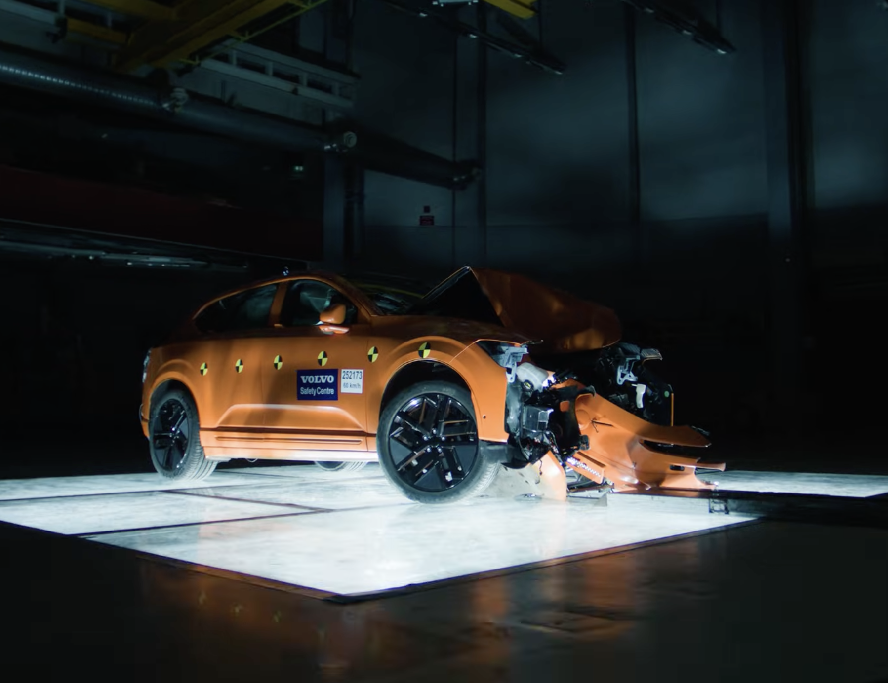 ในการทดสอบครั้งนี้ Volvo ปล่อย EX60 หลุดออกนอกถนนด้วยความเร็วประมาณ 60 กม./ชม. ก่อนจะพุ่งชนเสาอย่างจัง เพื่อจำลองสถานการณ์ที่ผู้ขับขี่เสียการควบคุมวิ่งออกถนน และชนต้นไม้หรือเสาไฟข้างทาง