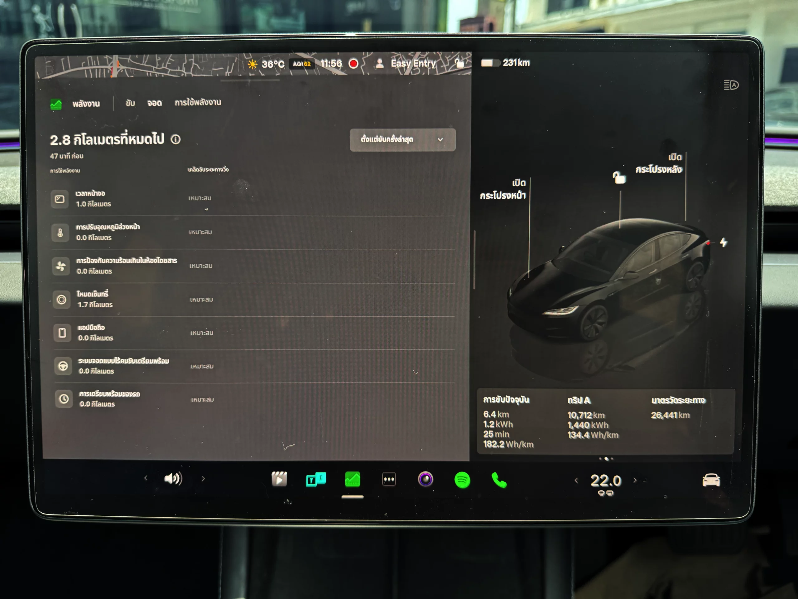 สามารถเช็คการใช้แบตเตอรี่ขณะจอดรถ ได้ที่ แอปพลังงาน (Energy) และเลือก จอด
