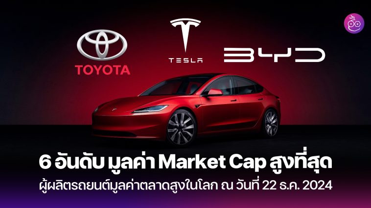 6 อันดับ ผู้ผลิตรถยนต์ที่มีมูลค่าตลาดสูงที่สุดในโลก ณ วันที่ 22 ธันวาคม 2024