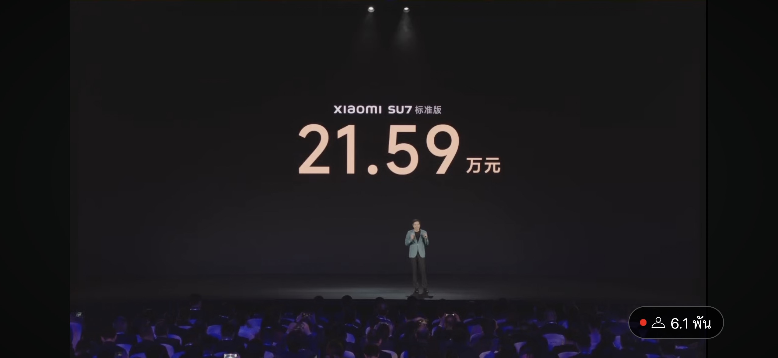 เปิดราคา Xiaomi SU7 ในจีนอย่างเป็นทางการ เริ่มต้น 215,900 หยวน (ประมาณ 1.1 ล้านบาท)