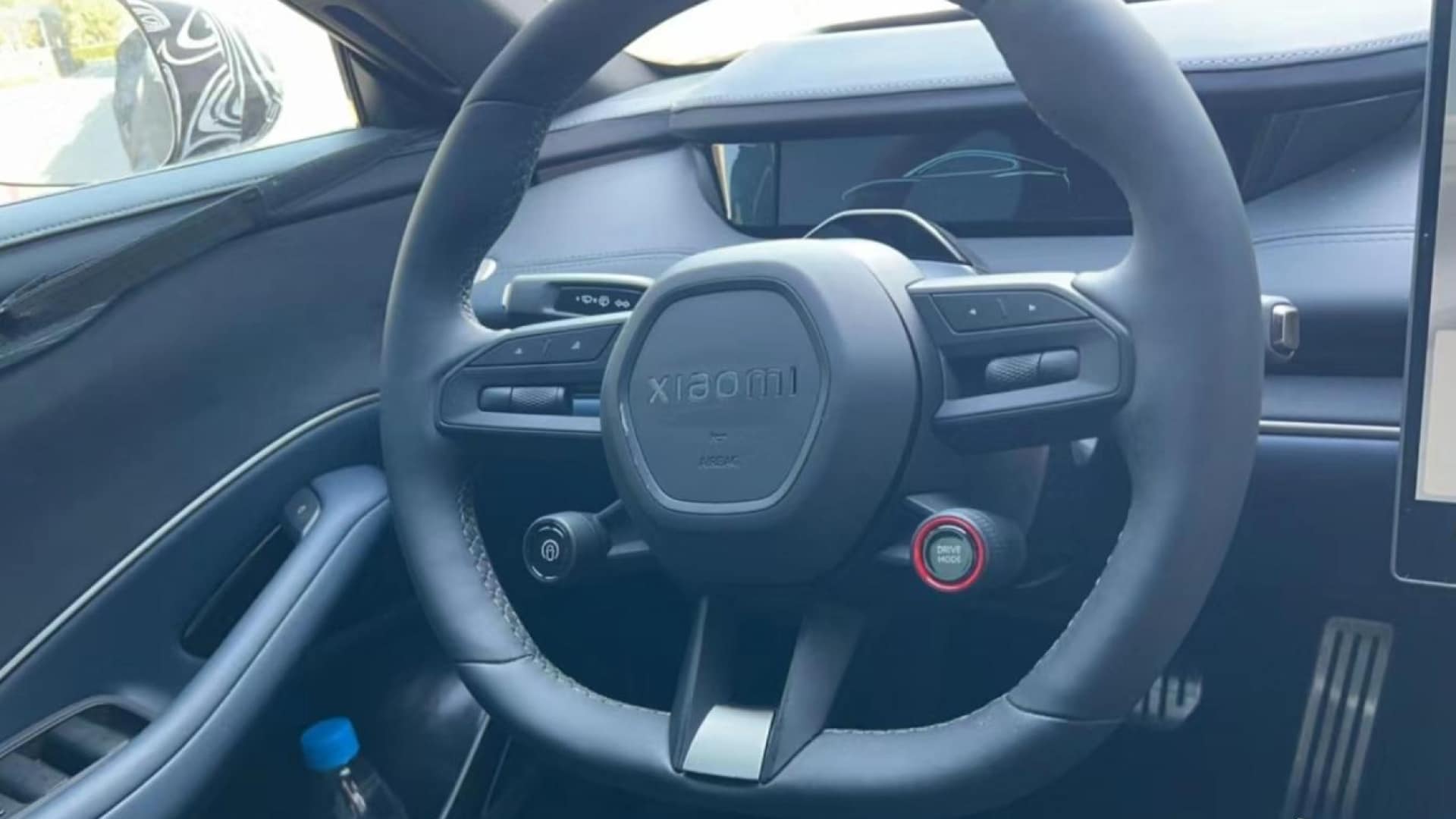 โดยพวงมาลัยของ SU7 นั้นเป็นแบบ 3 ก้านท้ายตัด มีปุ่มสลับโหมดการขับขี่และมีโลโก้ Xiaomi อยู่ตรงกลาง ด้านหลังพวงมาลัย ยังสังเกตเห็นเซ็นเซอร์ Face ID และตัวเลือกเกียร์ นอกจากนี้ข่าวลือยังเผยว่า SU7 มีหน้าจอ HUD ด้วย