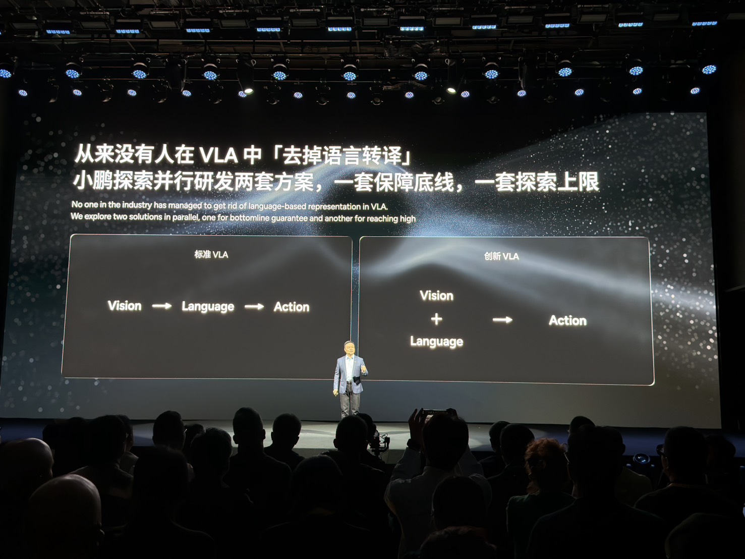 แต่ VLA รุ่นที่ 2 ของ XPENG ได้ลบขั้นตอนนี้ออกไป กลายเป็น มองเห็น > สั่งการ (Vision > Action) โดยตรง AI จะเรียนรู้จากโลกกายภาพจริงเหมือนที่มนุษย์เรียนรู้ ทำให้ระบบเข้าใจโลกได้ลึกซึ้งยิ่งขึ้น ข้อดีคือ