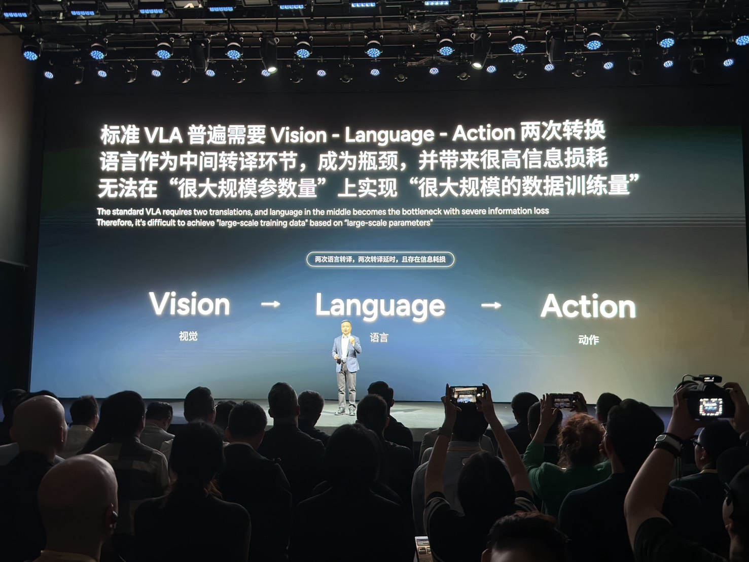 AI แบบดั้งเดิมทำงานใน 3 ขั้นตอน: มองเห็น > แปลเป็นภาษา > สั่งการ (Vision > Language > Action) ซึ่งกระบวนการ “แปลเป็นภาษา” นี้ ทำให้ข้อมูลบางอย่างสูญหายไปและเกิดความล่าช้า
