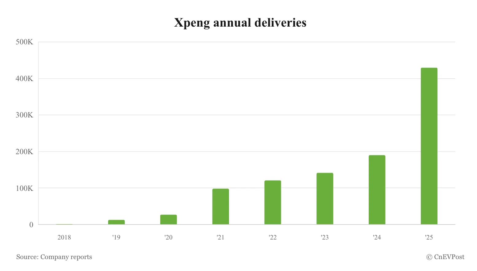สื่อท้องถิ่น 36Kr รายงานว่า ในการประชุมกลยุทธ์ภายในเมื่อเร็วๆ นี้ XPENG ได้กำหนดเป้าหมายยอดส่งมอบรถยนต์ตลอดปี 2026 ไว้ที่ 550,000 ถึง 600,000 คัน ซึ่งเมื่อเปรียบเทียบกับยอดส่งมอบในปี 2025 ที่ทำได้ 429,400 คัน เป้าหมายใหม่นี้จะถือว่าเติบโตขึ้นประมาณ 28.1% ถึง 39.7% นั่นหมายความว่าบริษัทจะต้องมียอดส่งมอบเฉลี่ยต่อเดือนให้ได้ราว 45,800 ถึง 50,000 คัน