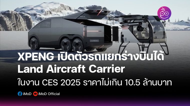 Land Aircraft Carrier รถยนต์ไฟฟ้าบินได้ของ XPENG ได้เปิดตัวครั้งแรกในงาน CES 2025 ที่ลาสเวกัส โดยรถคันนี้มาในรูปแบบรถตู้ไฟฟ้าที่มีดีไซน์คล้าย Tesla Cybertruck แต่เพิ่มความพิเศษด้วยยาน eVTOL ที่จอดอยู่ด้านหลังตัวรถ