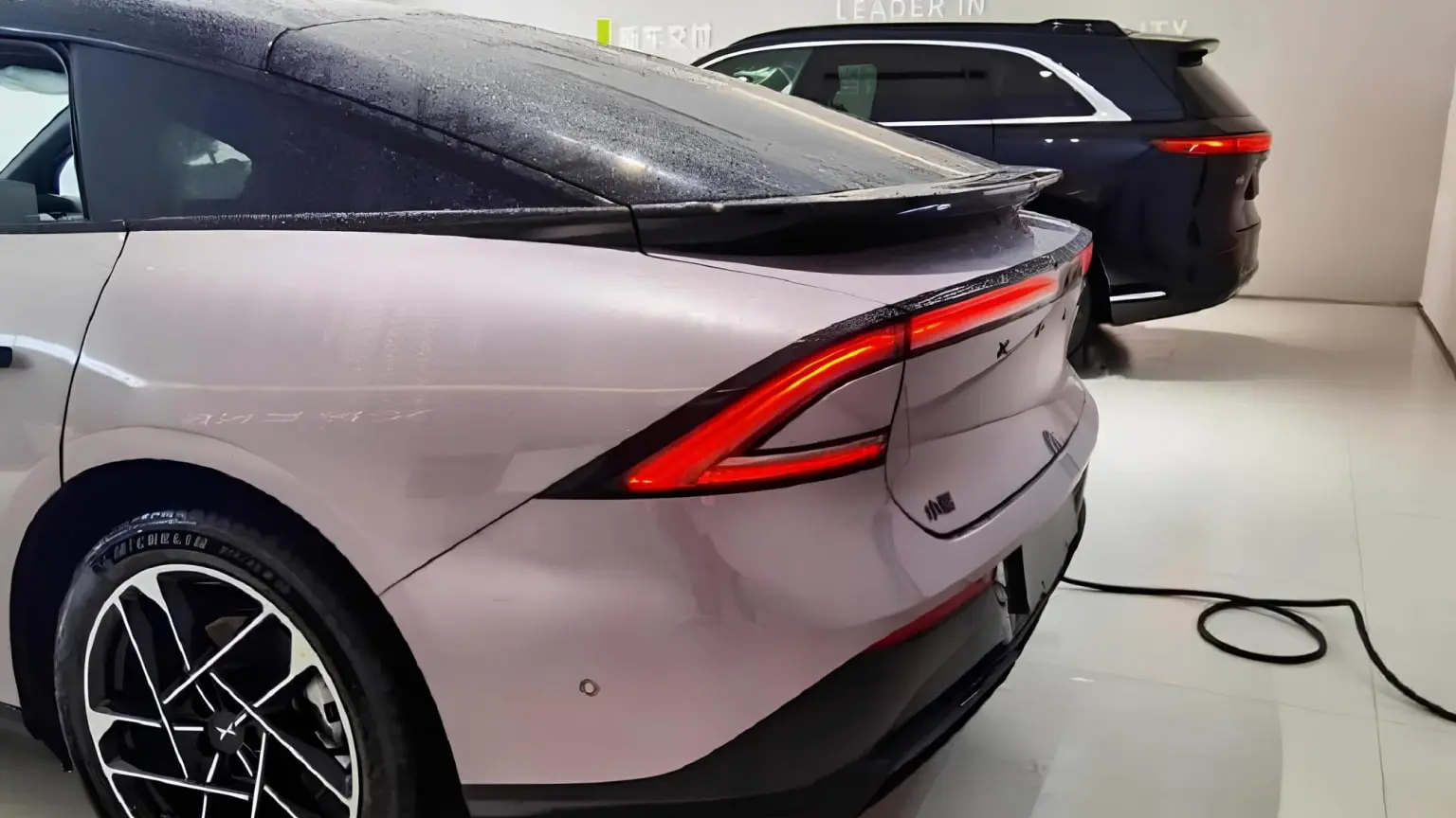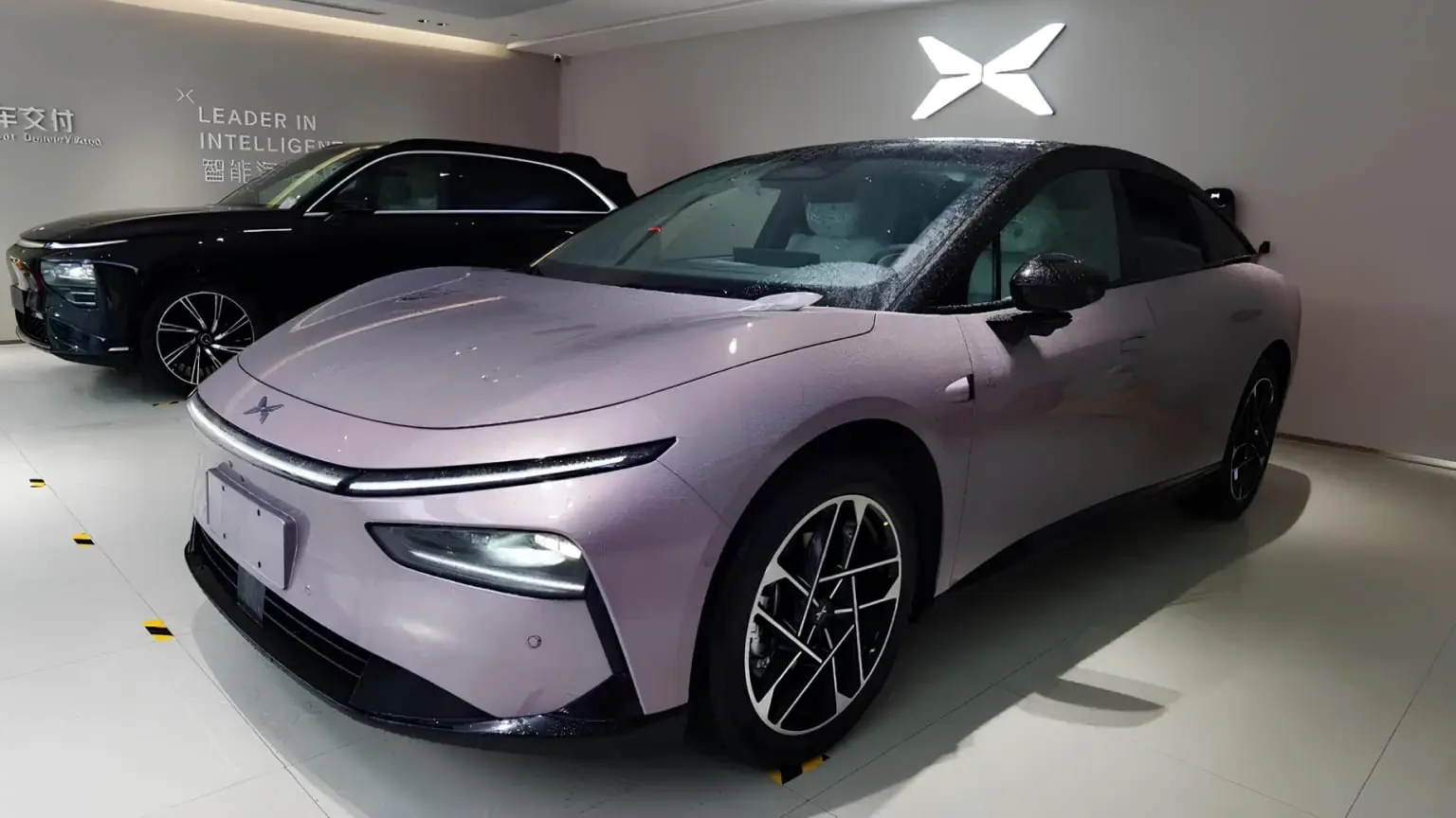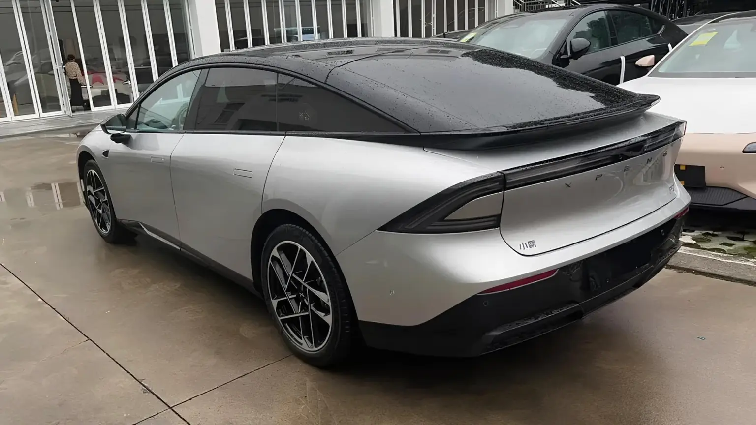 ภาพ Spyshot ชุดแรก พบ Xpeng P7+ ในร้านตัวแทนจำหน่ายในประเทศจีน เพื่อเตรียมจัดแสดง โดยตัวถังเป็นสีม่วง หลังคา เสา และป้ายหลังรถ ทั้งหมดเป็นสีดำ ส่วนอีกหนึ่งคันตัวถังเป็นสีเงิน ป้ายหลังรถเคลือบโครเมียม จอดบริเวณด้านข้างโชว์รูม