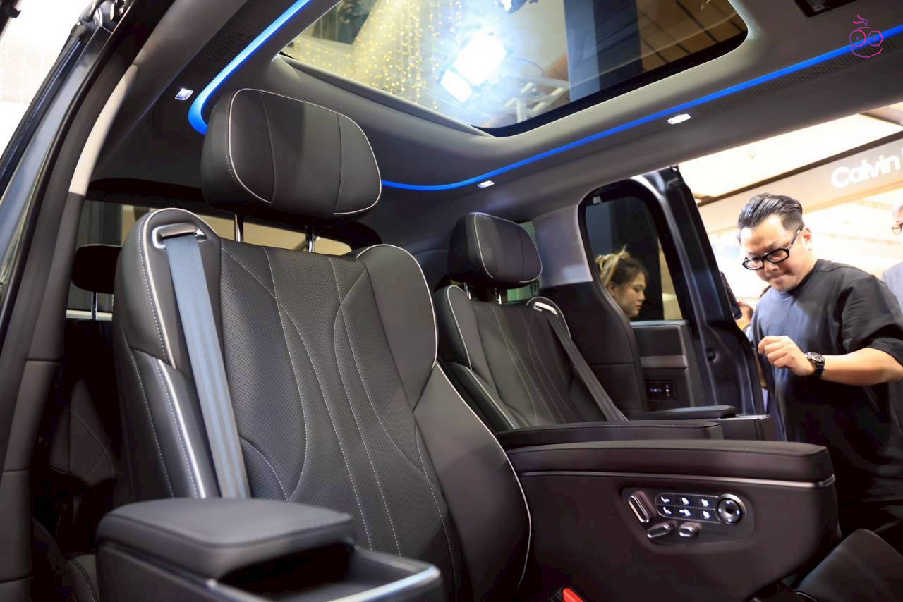 รถตู้ไฟฟ้าทรงสปอร์ตอัจฉริยะ ที่มาพร้อมเฉดสีภายใน Moon Shadow Coffee และ Meteorite Black นั่งสบายด้วยเบาะแถวที่สองแบบโซฟา พร้อมฟังก์ชั่น Zero-Gravity ปรับไฟฟ้าได้ 14 ทิศทางและช่องทางเดินระหว่างเบาะแถวที่สอง รวมถึงที่ชาร์จแบบไร้สาย