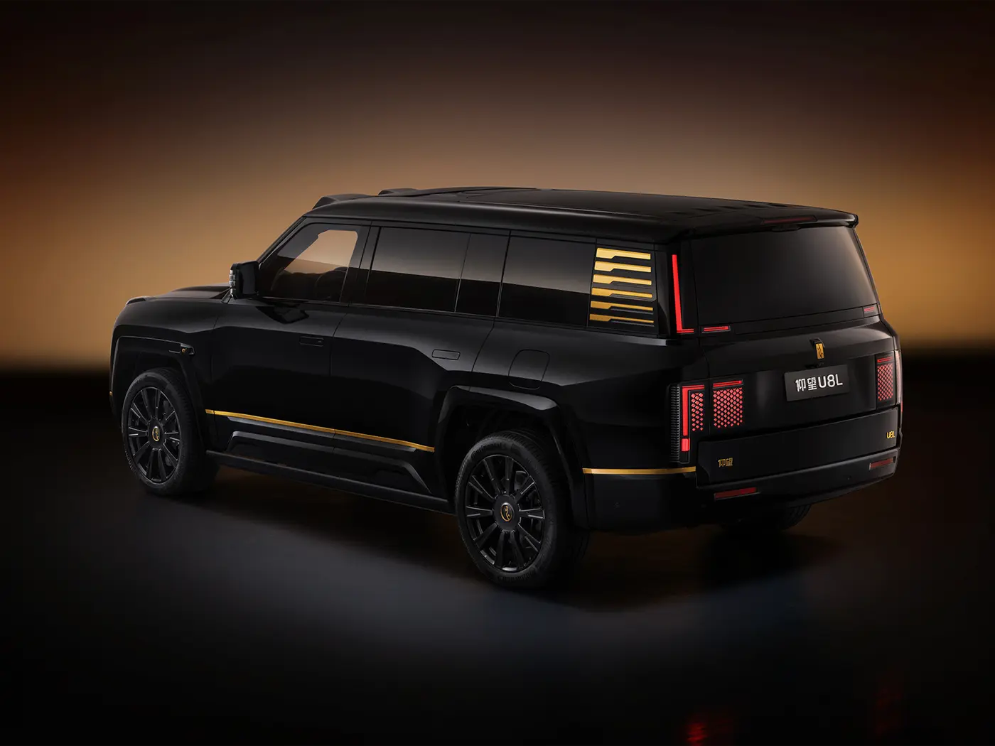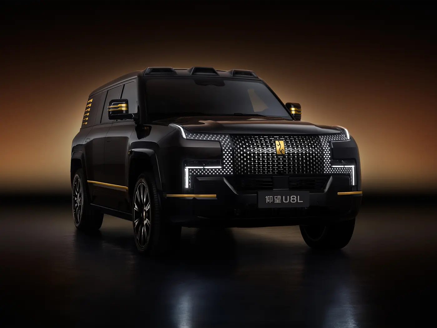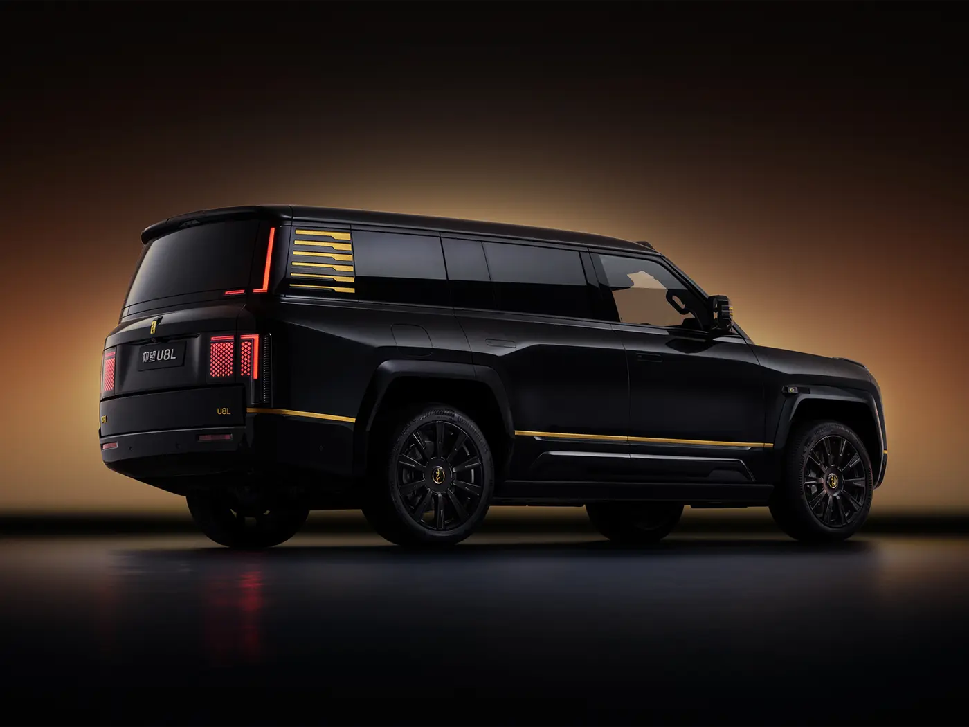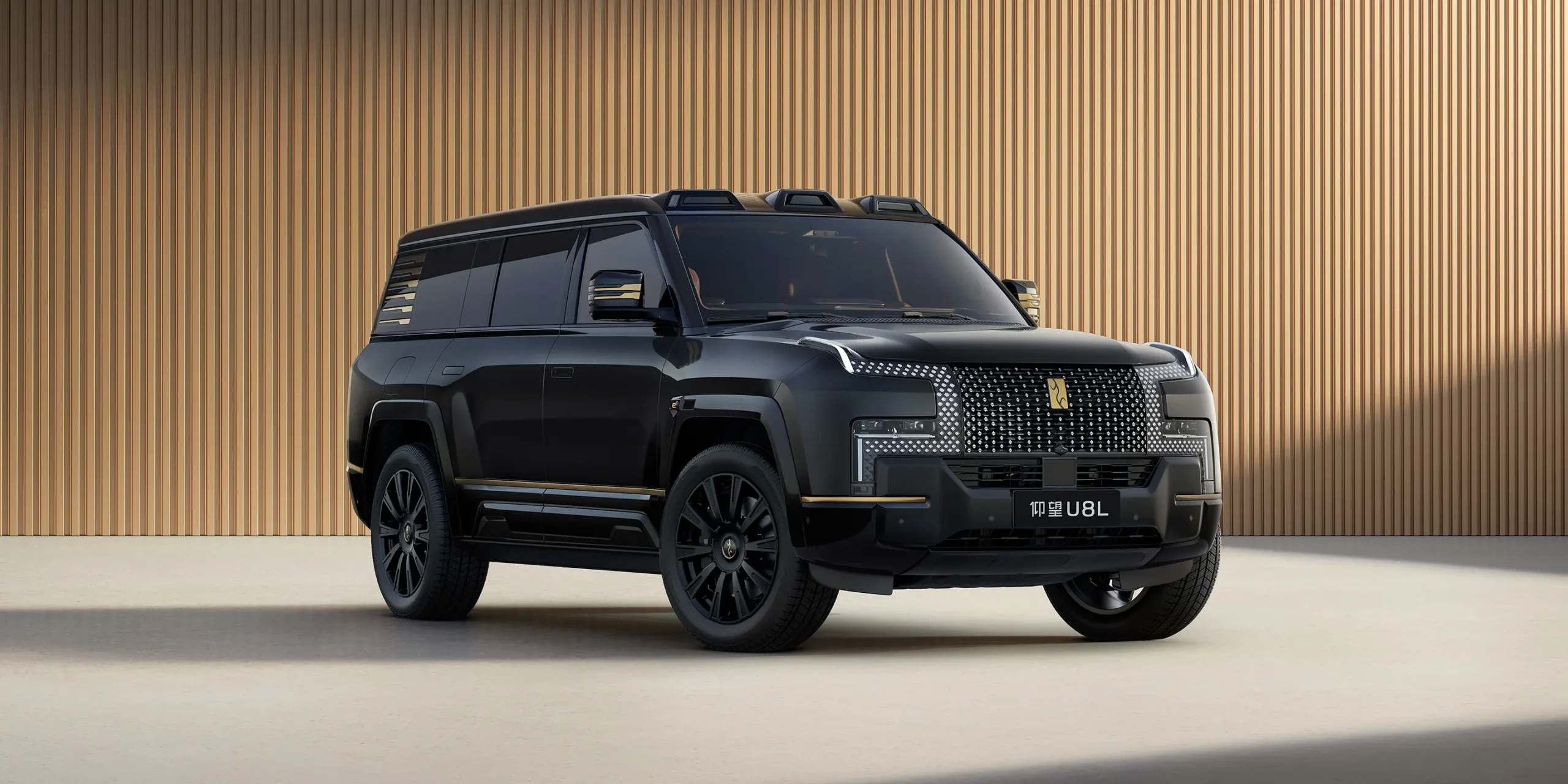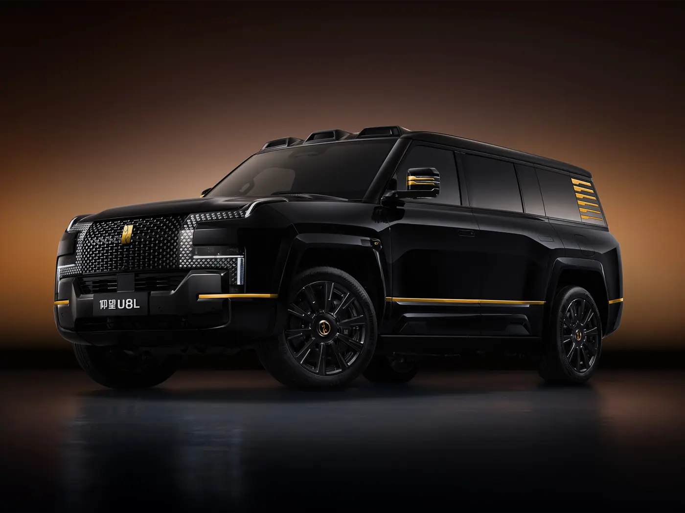 อีกหนึ่งคุณสมบัติที่โดดเด่นของ YangWang U8L คือโลโก้เคลือบทองคำแท้ 24K ที่ด้านหน้า ซึ่งมาแทนที่ตราโลโก้ที่ทำจากกระจกของ YangWang U8 รุ่นปกติ ในรุ่น YangWang U8L มีให้เลือกสีแบบทูโทน ได้แก่ สีดำและสีทอง พร้อมล้อขนาดใหญ่ 23 นิ้ว