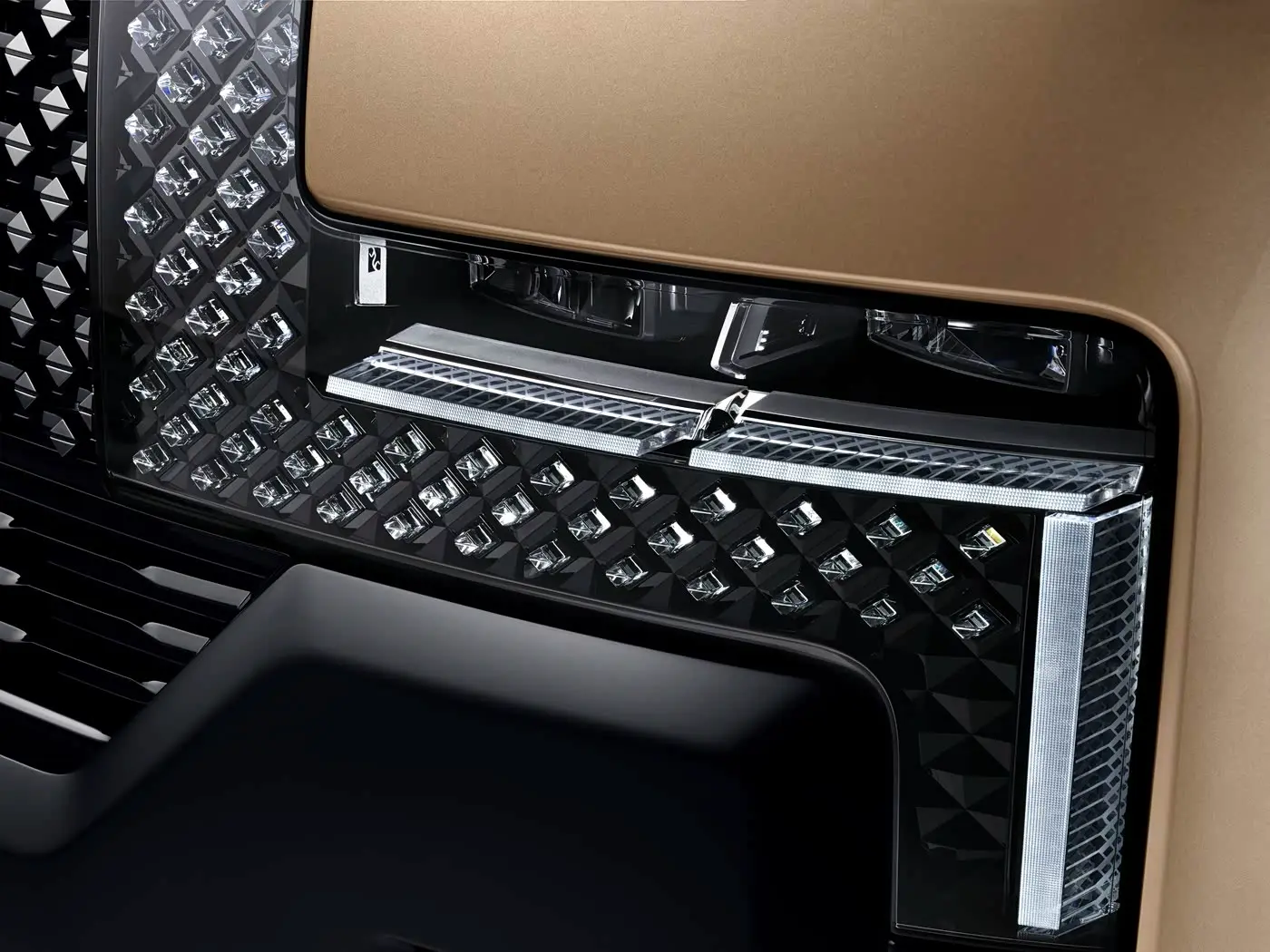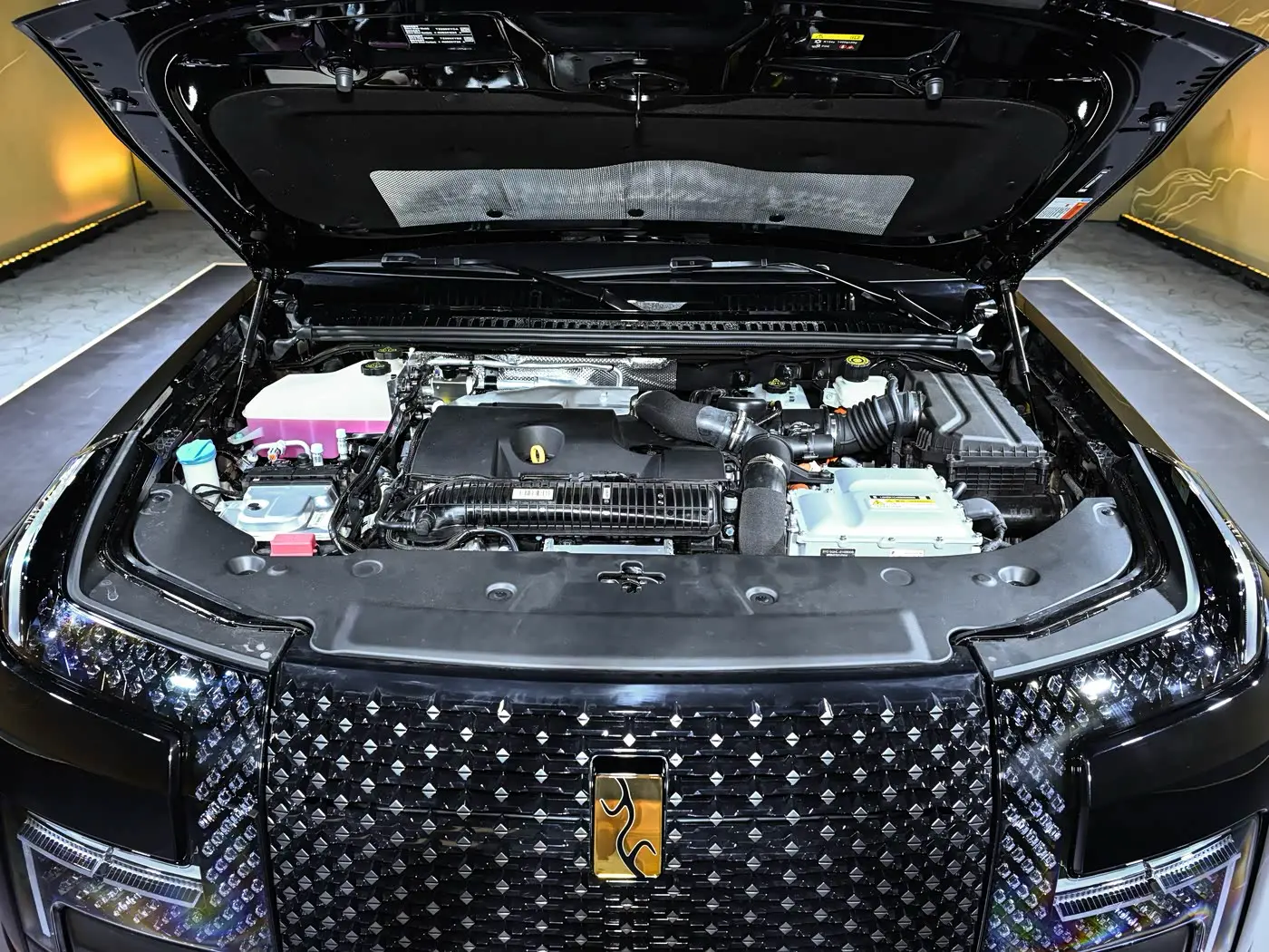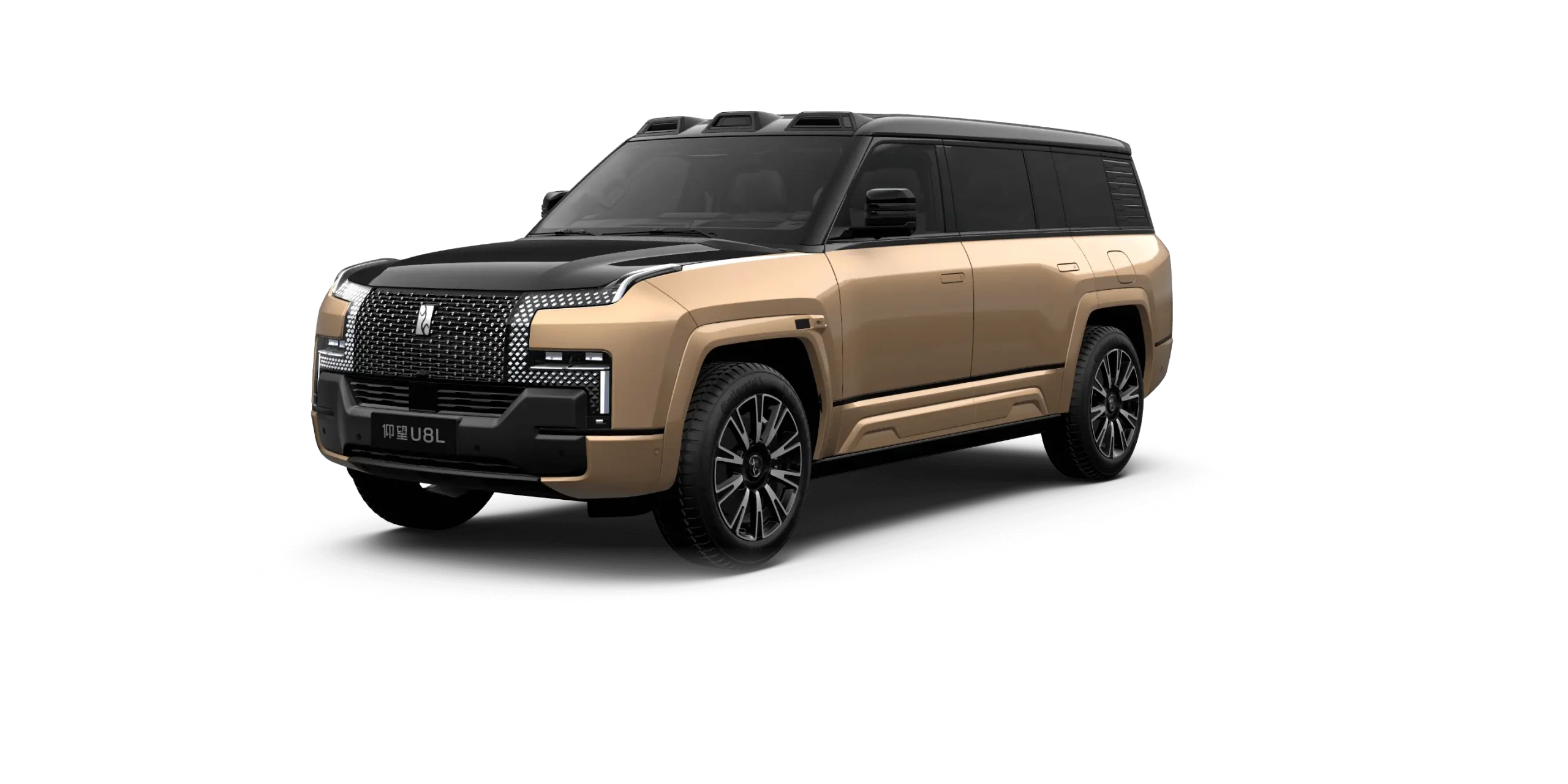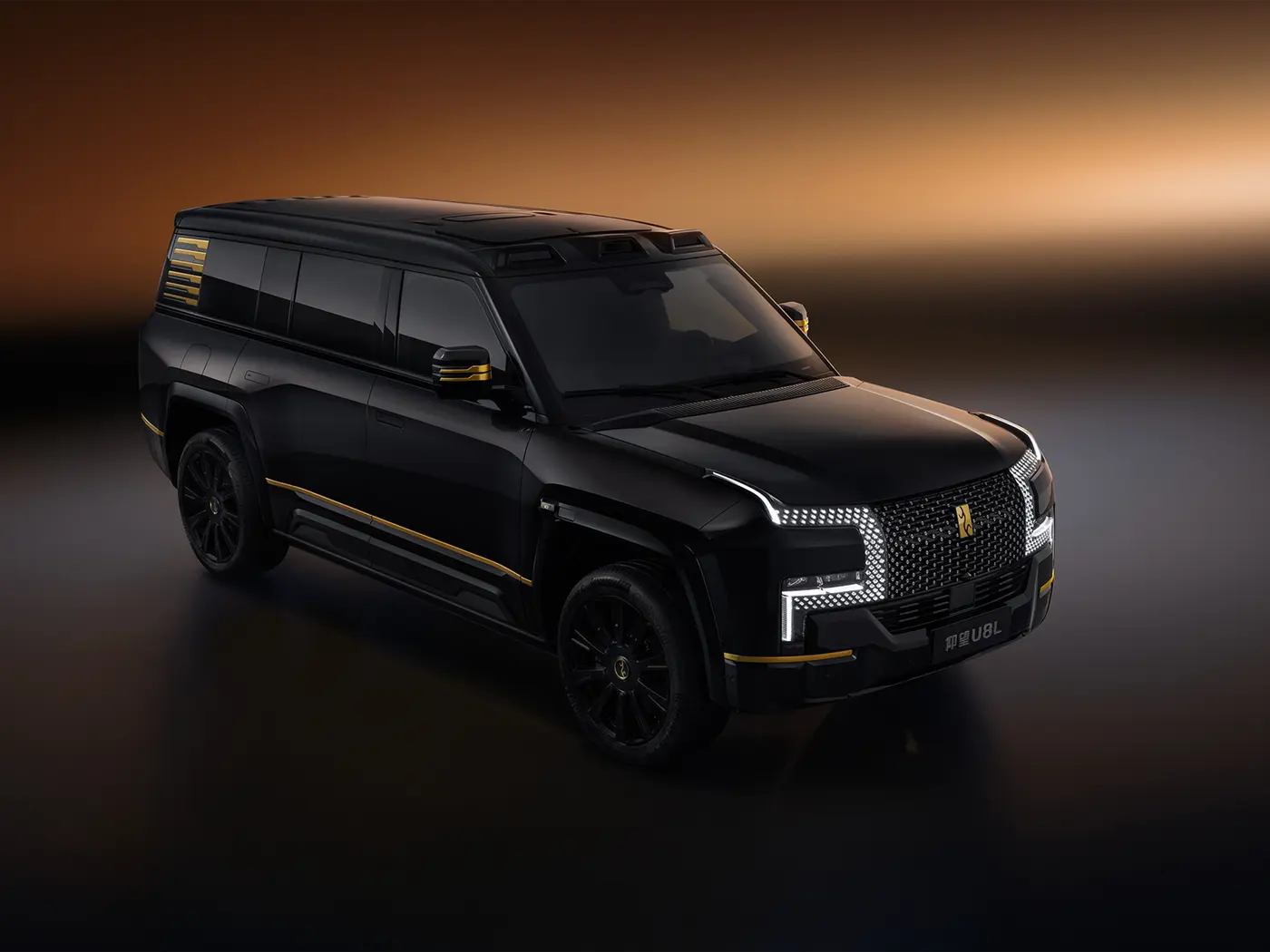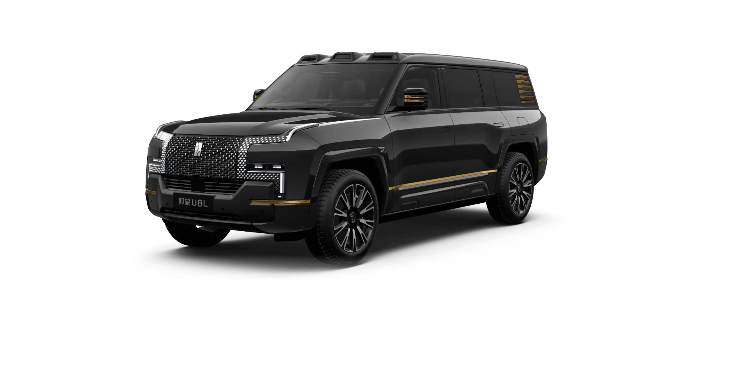 อีกหนึ่งคุณสมบัติที่โดดเด่นของ YangWang U8L คือโลโก้เคลือบทองคำแท้ 24K ที่ด้านหน้า ซึ่งมาแทนที่ตราโลโก้ที่ทำจากกระจกของ YangWang U8 รุ่นปกติ ในรุ่น YangWang U8L มีให้เลือกสีแบบทูโทน ได้แก่ สีดำและสีทอง พร้อมล้อขนาดใหญ่ 23 นิ้ว