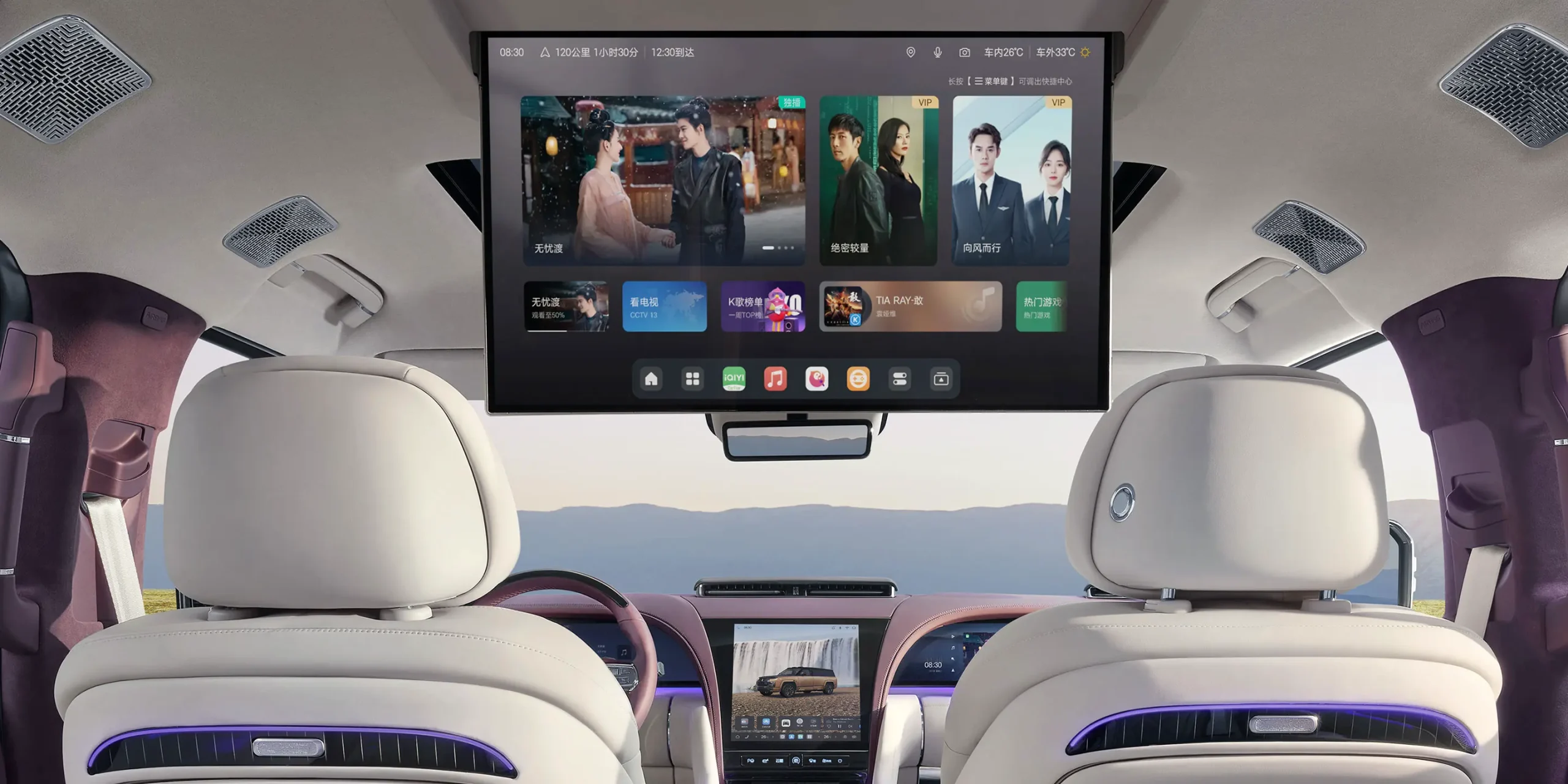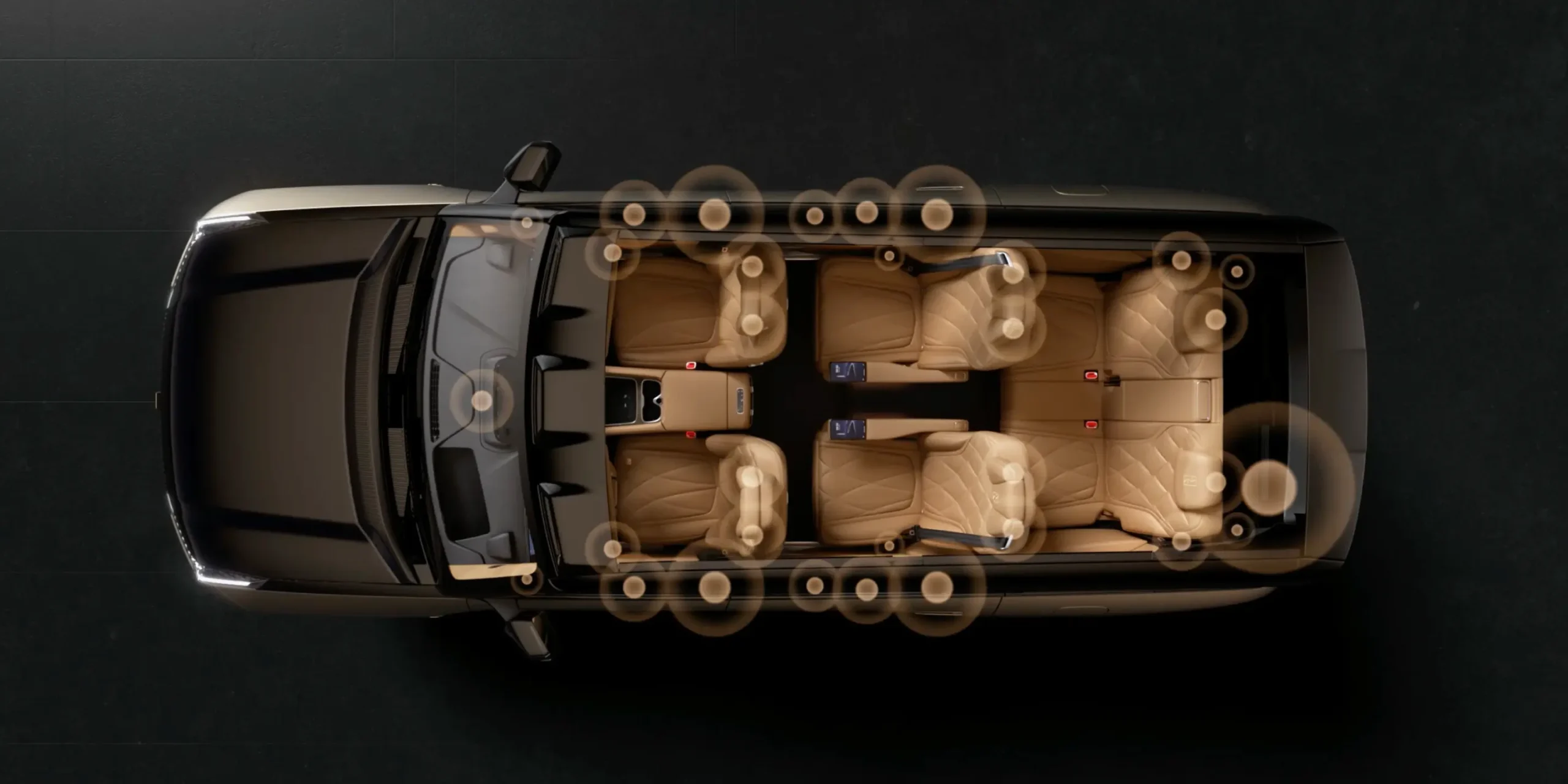 ภายในห้องโดยสารของ YangWang U8L มาพร้อมที่นั่งแบบ 3 แถว พร้อมการจัดเลย์เอาท์แบบ 2+2+2 คอนโซลกลางมีจอแสดงผล 3 จอ ได้แก่ หน้าจอแสดงผลหลังพวงมาลัยขนาด 23.6 นิ้ว หน้าจอสัมผัส Infotainment แบบแนวตั้งขนาด 12.8 นิ้ว และหน้าจอสำหรับผู้โดยสารด้านหน้าขนาด 23.6 นิ้ว เบาะนั่งแถวที่ 1 และแถวที่ 2 มีฟังก์ชันเบาะอุ่น เบาะระบายอากาศ และเบาะนวด 14 จุด ที่วางแขนของ SUV คันนี้ก็มีระบบทำความร้อนเช่นกัน อีกหนึ่งฟีเจอร์เด่นของ YangWang U8L คือกระจกหน้าต่างแถวที่ 2 ปรับแสงอัตโนมัติ เพื่อเพิ่มความเป็นส่วนตัวให้กับผู้โดยสาร นอกจากนี้ยังมีหน้าจอขนาดใหญ่ที่ติดตั้งบนเพดานสำหรับผู้โดยสารตอนหลังอีกด้วย