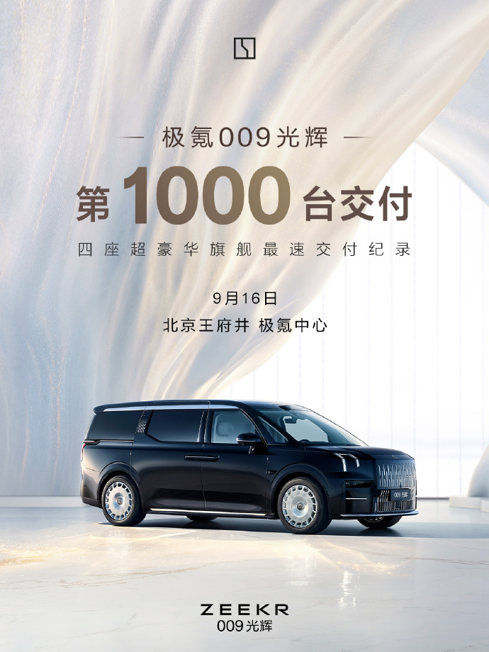 Zeekr 009 Glory Edition (หรือเรียกว่า Zeekr 009 Grand) MPV ไฟฟ้า 4 ที่นั่ง ที่มีแรงม้าสูงสุด 777 แรงม้า ส่งมอบ 1,000 คันในประเทศจีน โดยใช้เวลาเพียง 115 วัน ในราคา 789,000 หยวน หรือประมาณ 3.69 ล้านบาท